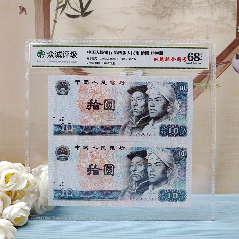 Четвёртый выпуск РМБ, близнецы 2, 10 юаней, коллекция, 80 лет, 4 версии, подлинные монеты 8010