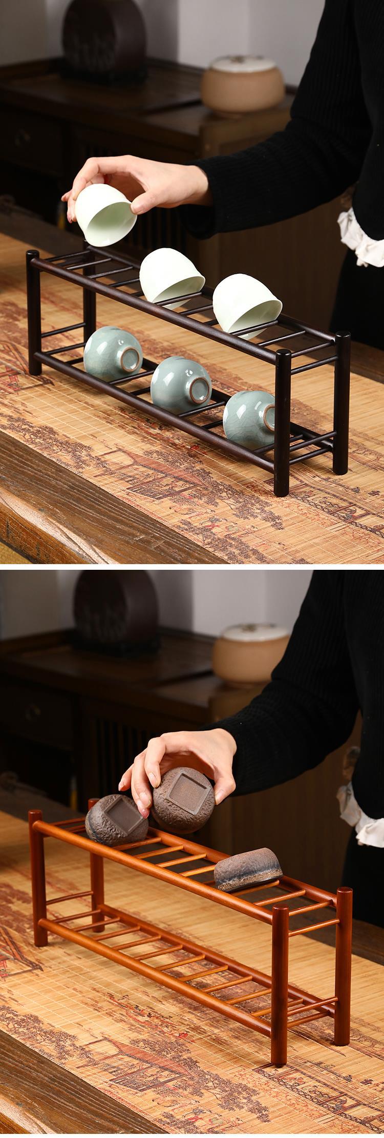 Двухъярусный держатель для чашек из бамбука, подставка для чайных аксессуаров
