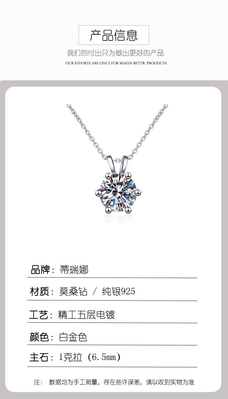 Ожерелье из моиссанита с покрытием Pt950 Подвеска 1 карат Zhoujia шести-лапка Кросс-бордерное S925 стерлинговое серебро Цепочка на ключицу Оптовая продажа с завода