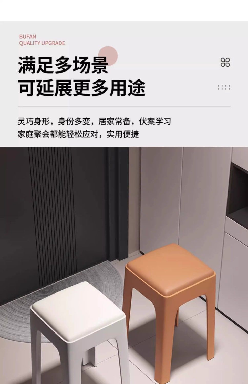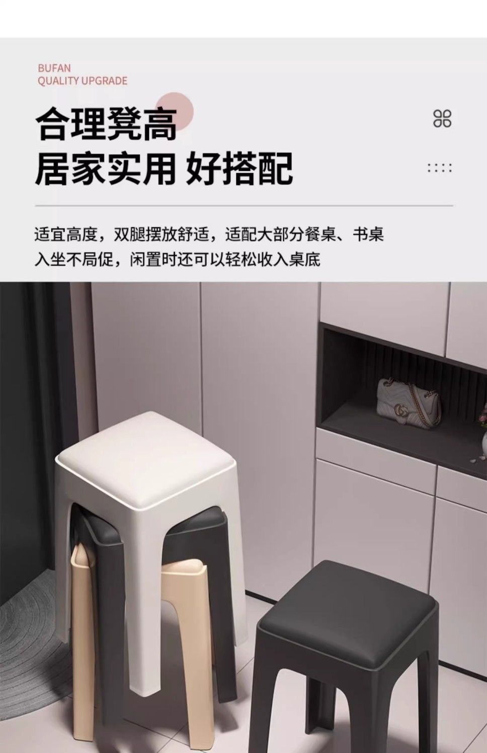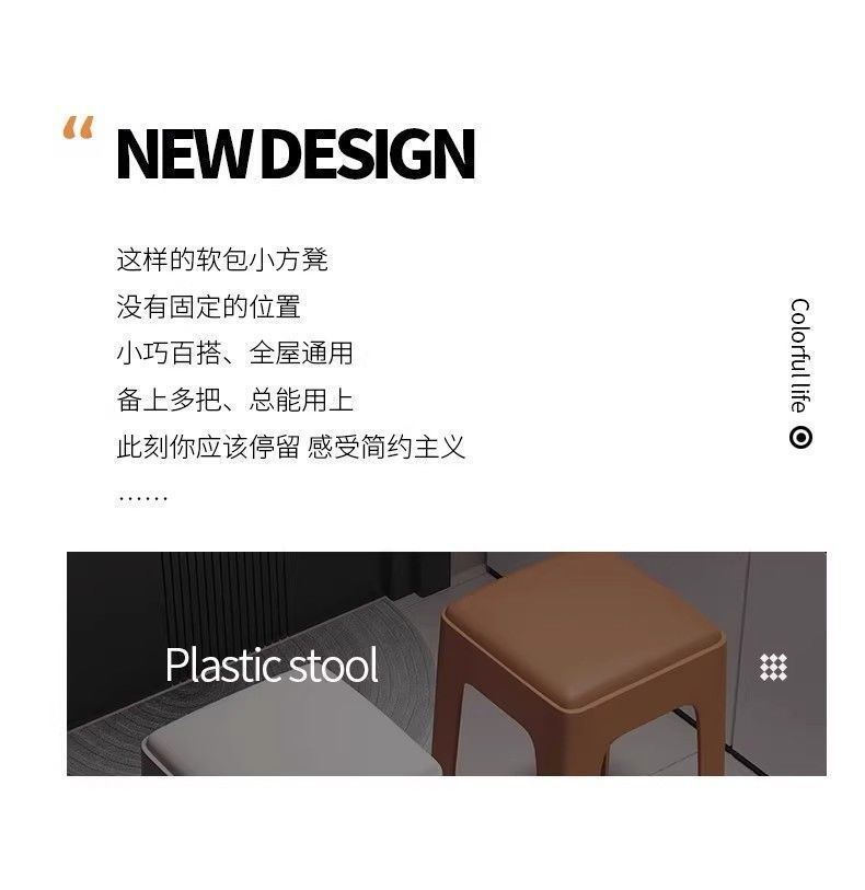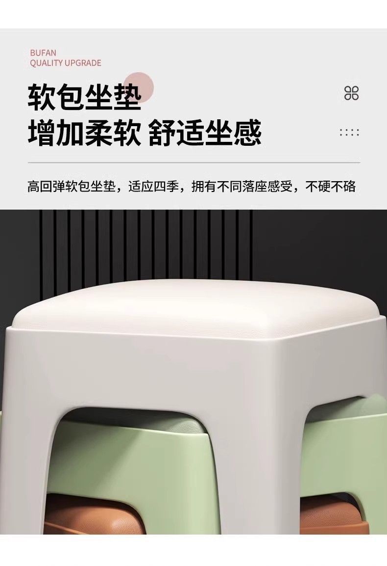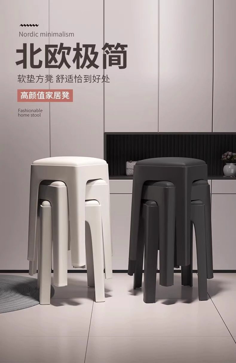 Табурет для дома, утолщенный и прочный пластиковый, мягкий квадратный табурет для гостиной, простой нескользящий табурет для обеденного стола, складной высокий табурет