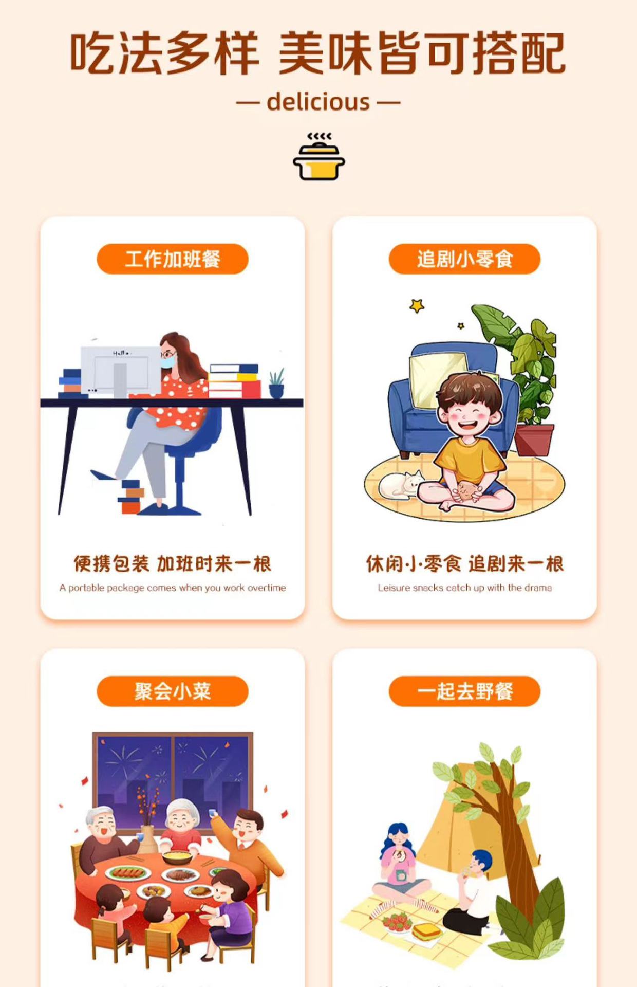 ![]() | Spicy crispy sausage 32g/piece [please order 60 pieces for the whole box] | ¥0.9 / ≈ 11 ₽ | 34247 | 5834495576757 | |