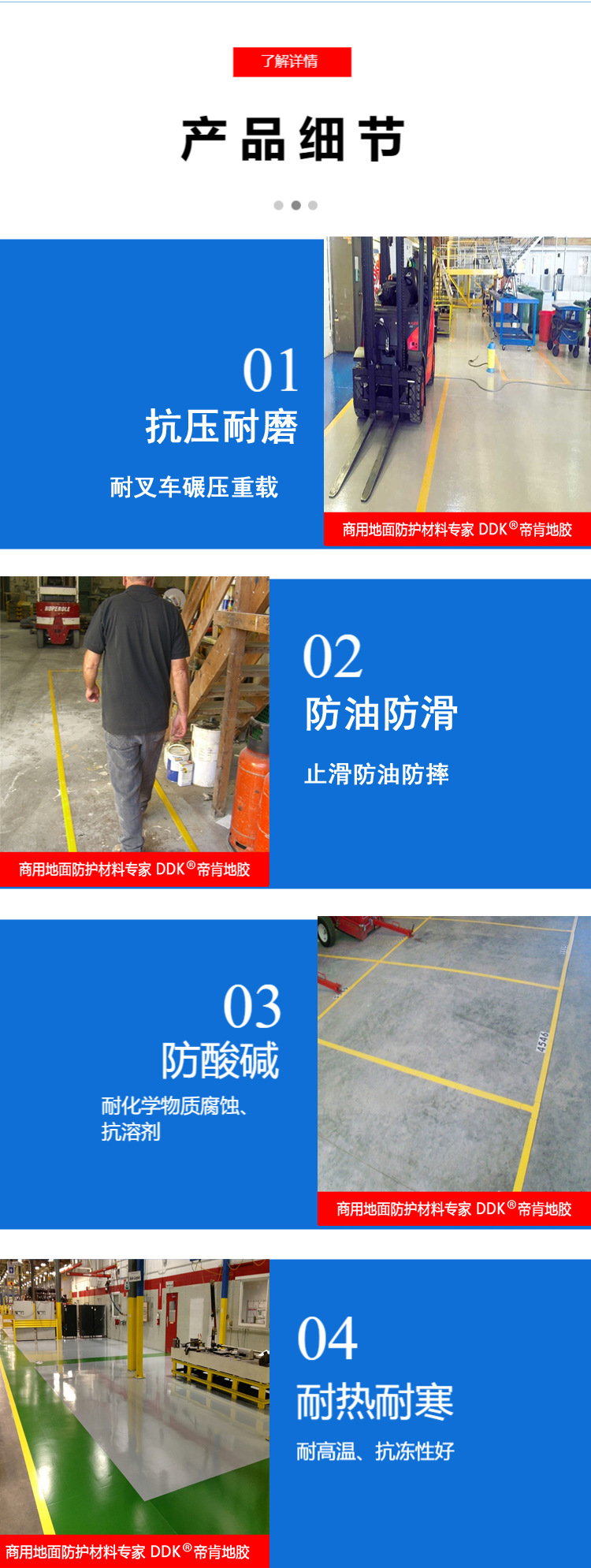 我们的产品不仅耐腐蚀、耐酸碱,更能承受高强度的压力和摩擦,具备出色的抗压耐磨能力。即使在面临重物防砸、高承重的情况下,依然能保持良好的状态,确保使用安全和稳定。同时,其防腐蚀、阻燃、防滑、耐油的特性,使其在复杂的工业环境中也能长久使用,为您的工业生产提供可靠的地面保障。