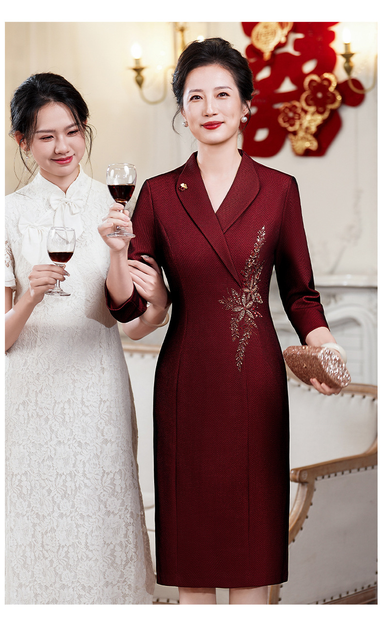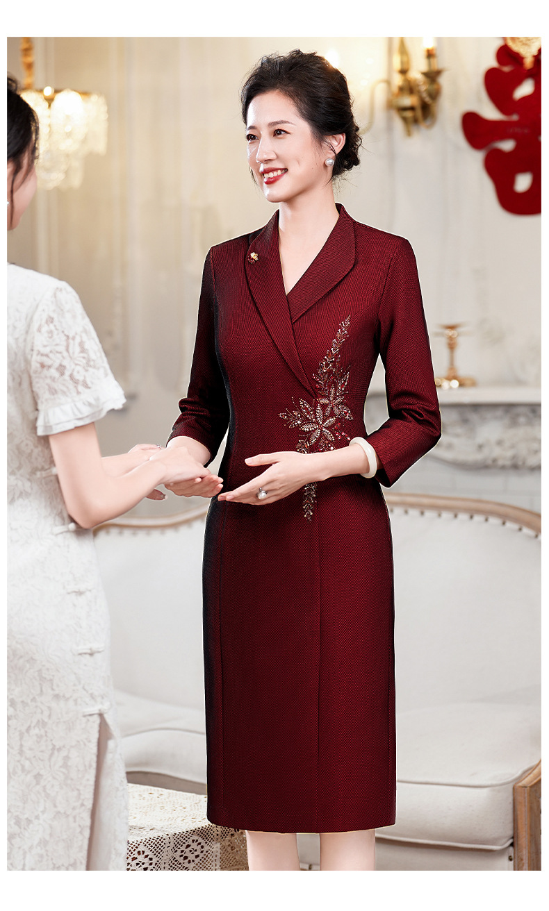 Официальное осеннее платье для мамы, высококачественное, большой размер до 100 кг, элегантное платье для свекрови с воротником