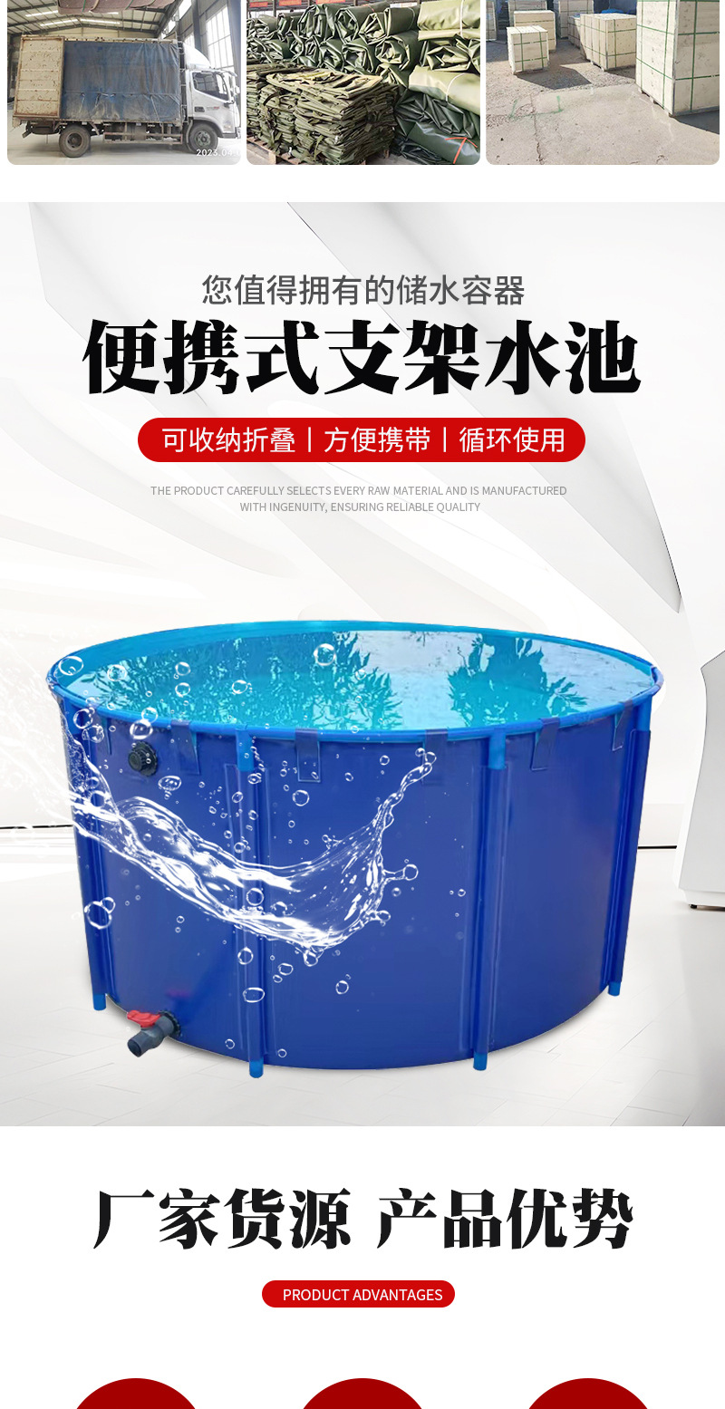 Бассейн для хранения воды, канвасный пруд с подставкой, полный комплект, переносной, складной
