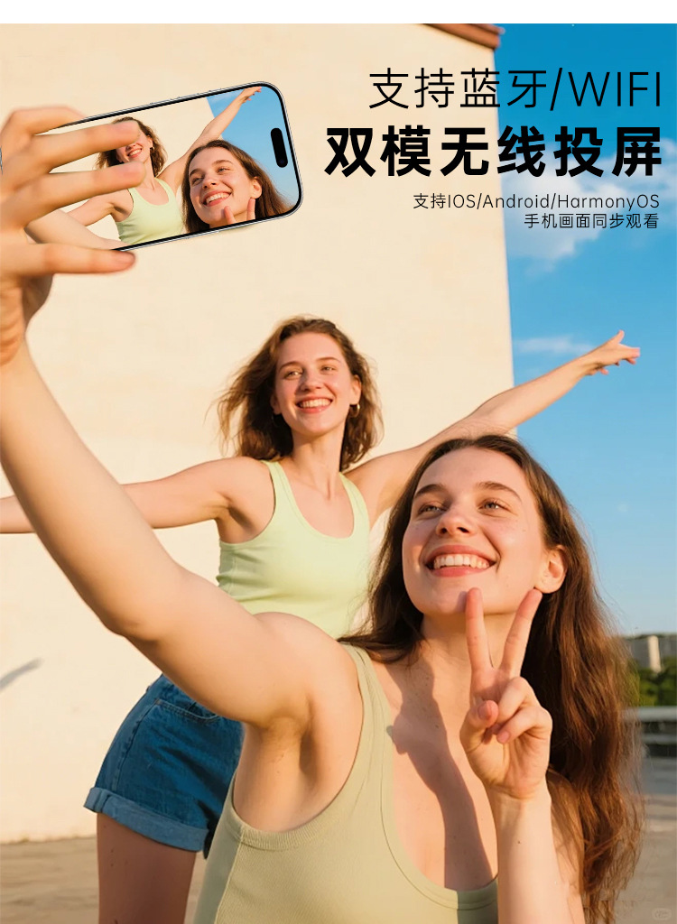 Проектор для мобильного телефона с экраном для селфи 4.02 дюйма с беспроводной передачей аудио, дублирование экрана, задняя камера, трансляция
