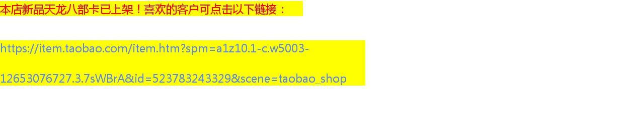 ![]() | 168 cards of xiaohu team tianlong bagu | ¥31.25 / ≈ 380 ₽ | 236 | 6003402950974 | |