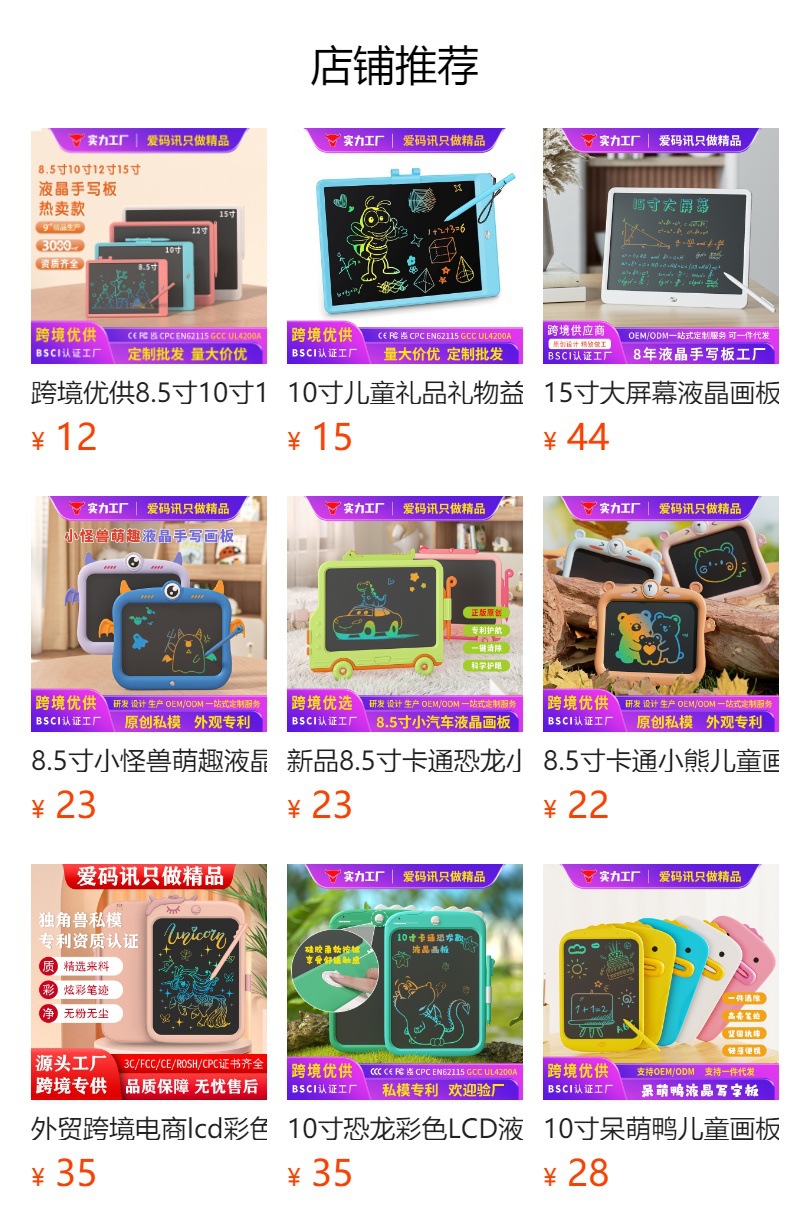![]() | Pink [colored stylus holder model] 10inch lcd blackboard | ¥15.0 / ≈ 182 ₽ | 12751 | 5932674792354 | |