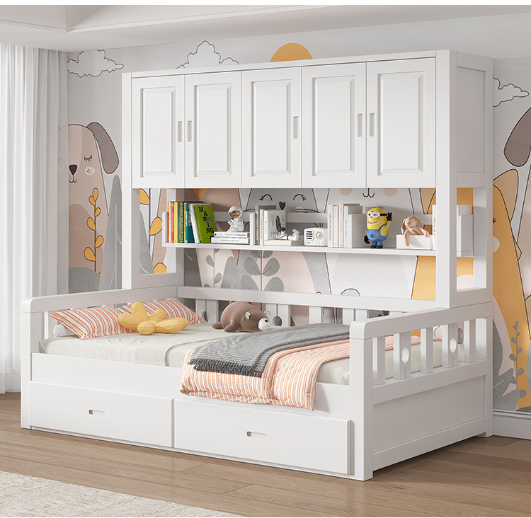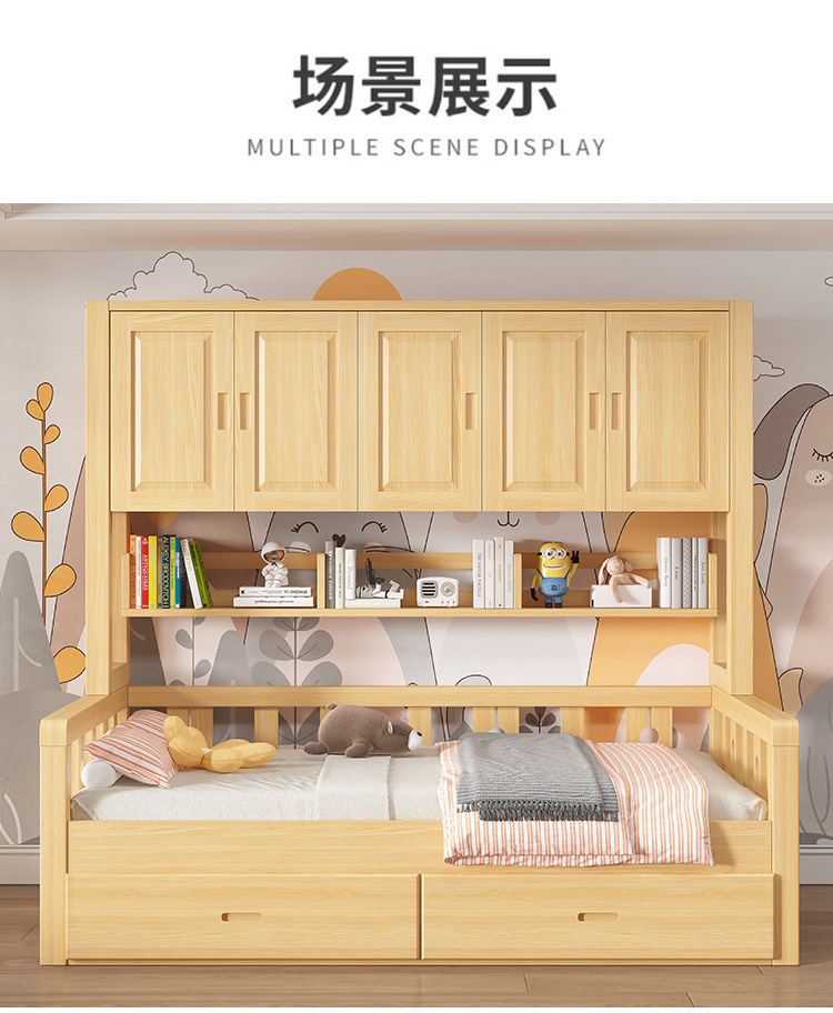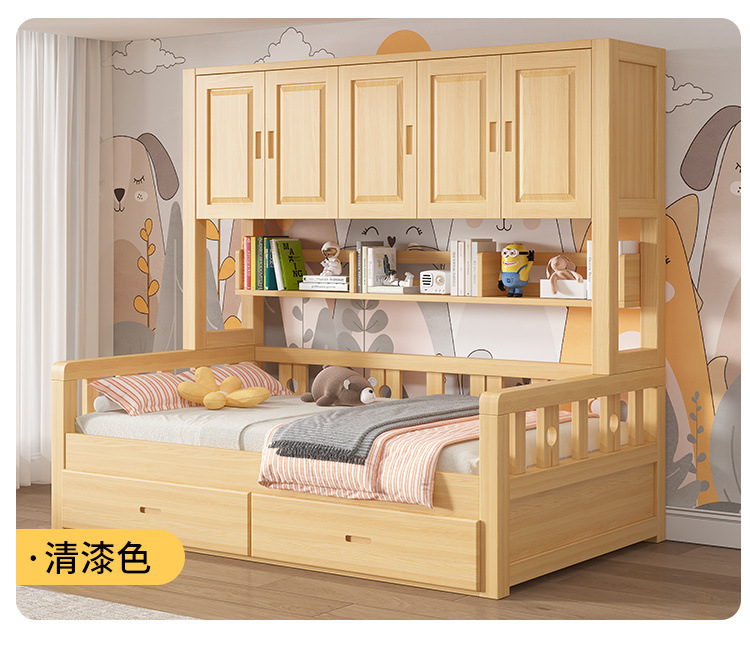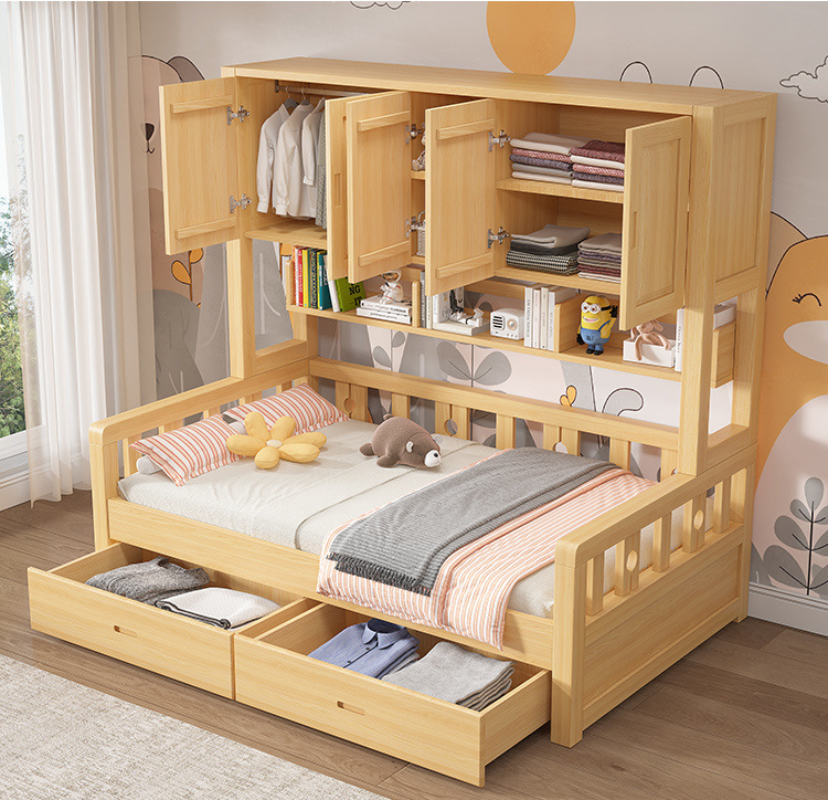 Кровать из массива дерева для детей Татами, многофункциональная, шкаф, интегрированная комбинация, простая, современная, совместная кровать с гардеробом