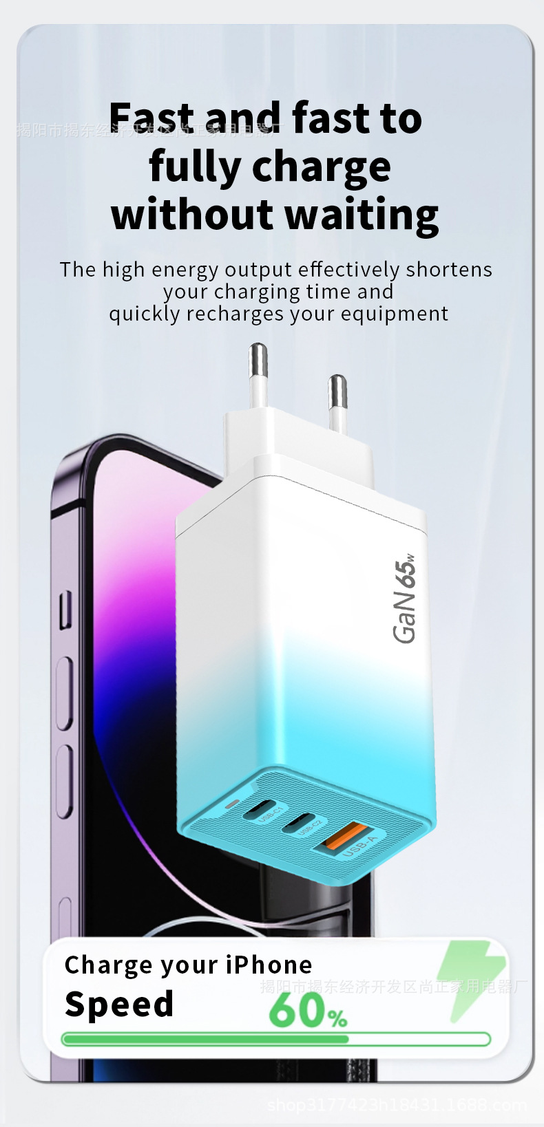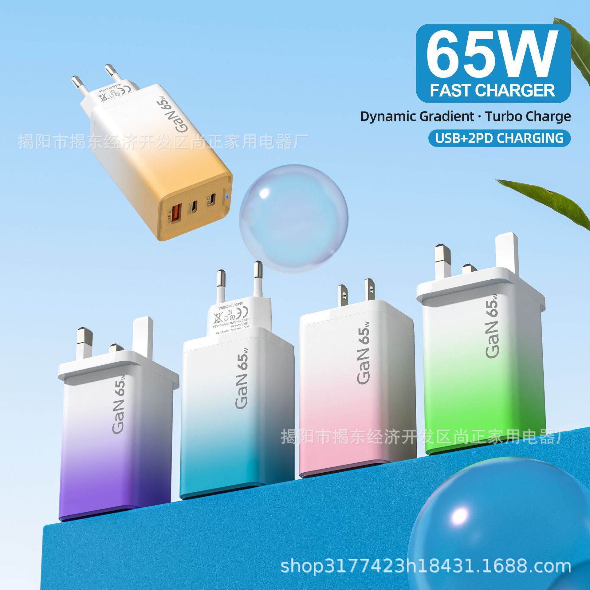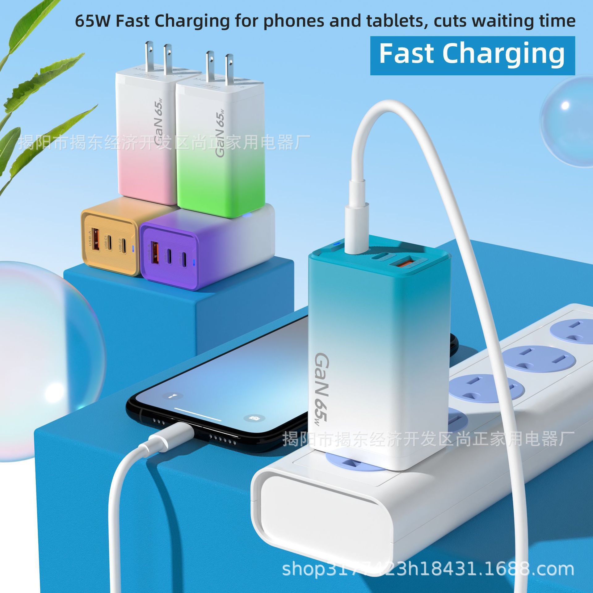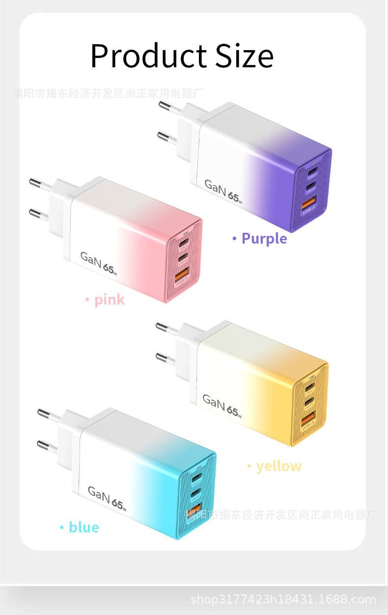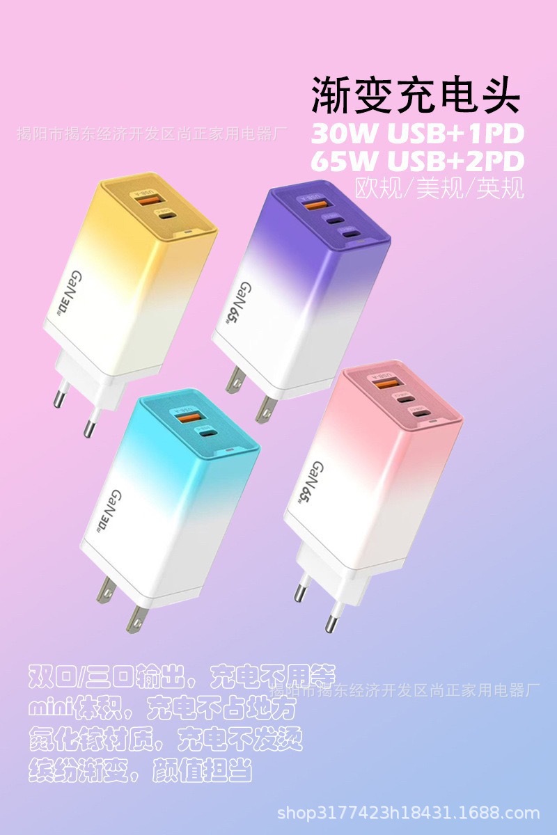 Зарядное устройство 65W, градиентная зарядка, многоцветное, многопортовое быстрое зарядное устройство с подсветкой, подходит для Apple, Huawei, 30W