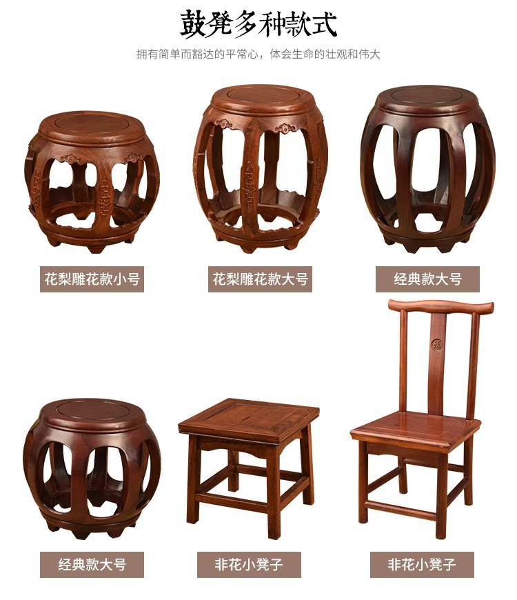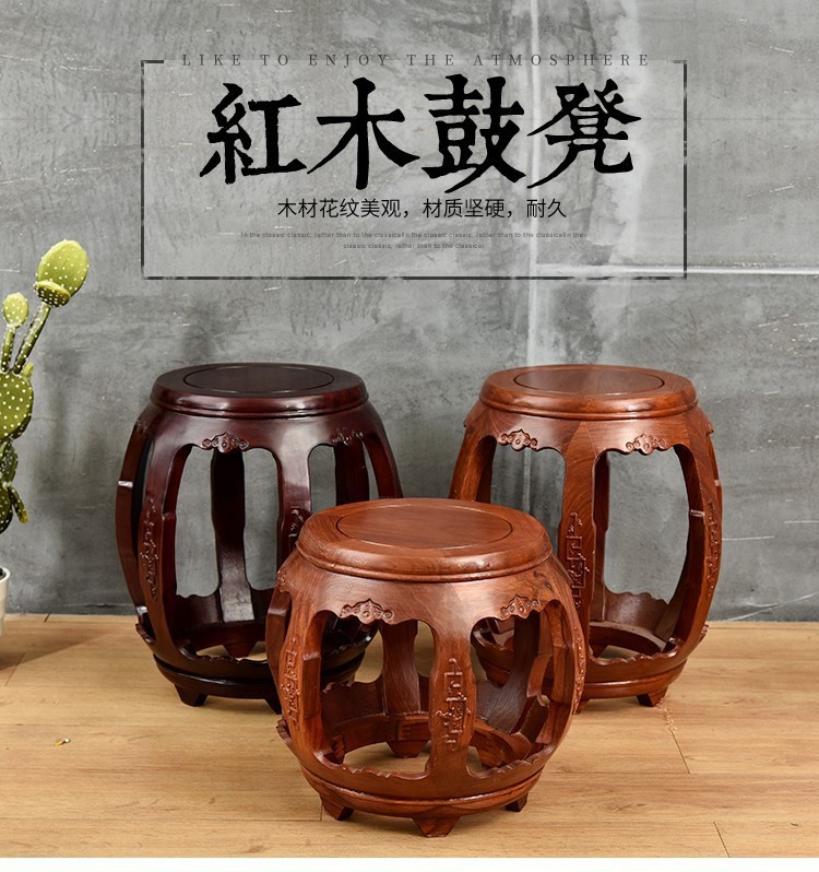 Барабанный табурет, круглый табурет из массива дерева, малый низкий табурет, табурет для смены обуви из красного дерева