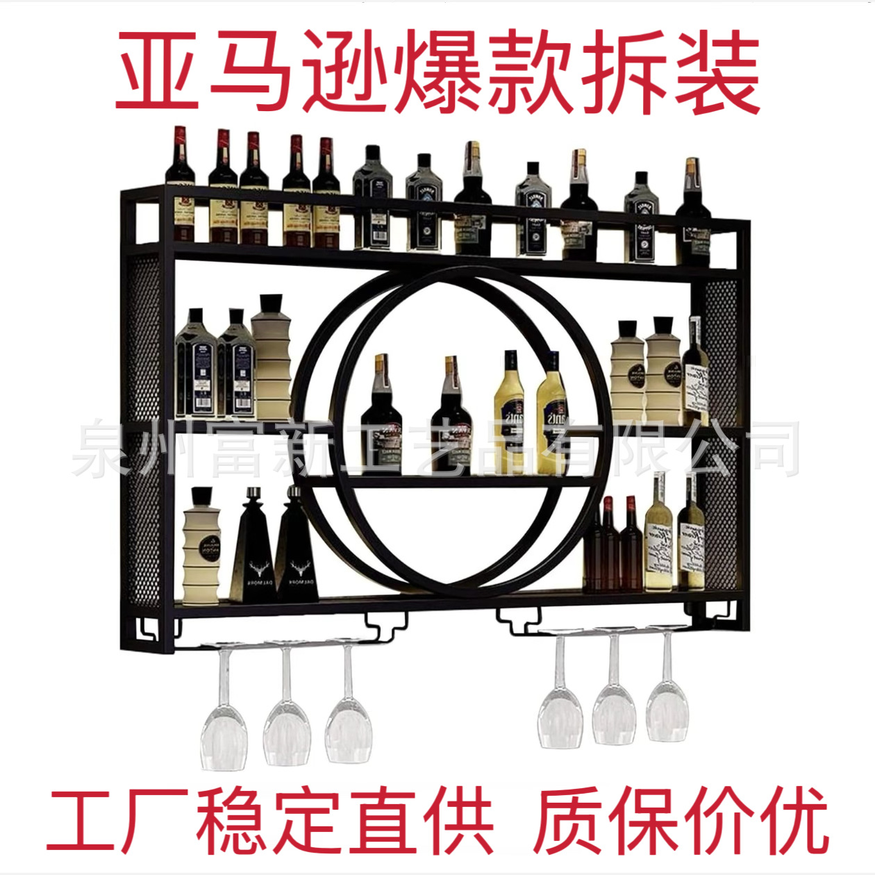 Настенный металлический винный шкаф Amazon, железная полка для хранения, настенный винный дисплей, барная и ресторанная декорация