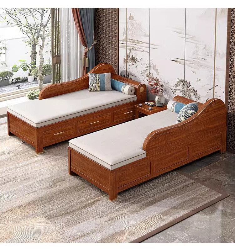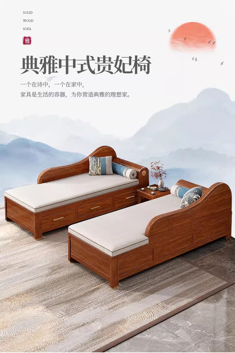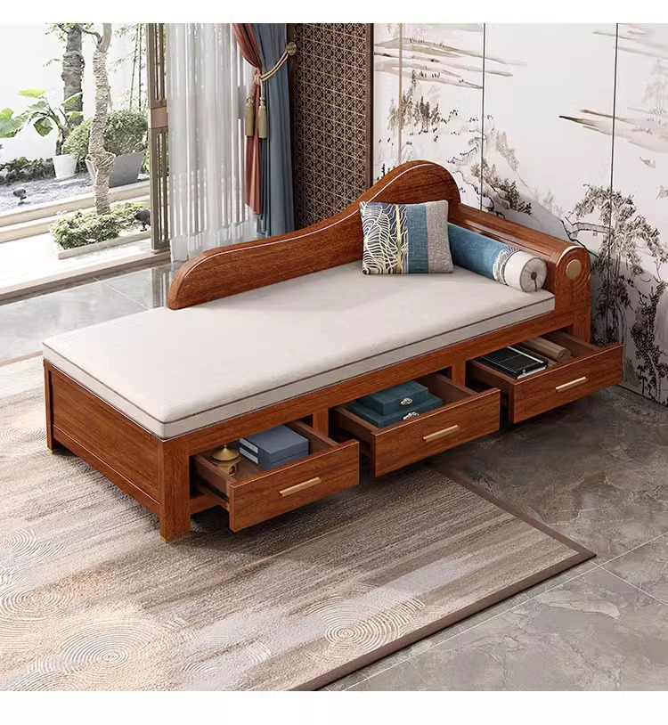 Кресло-шезлонг из массива дерева, кресло для гостиной, шезлонг, современный китайский стиль диван с подушкой, шезлонг из массива дерева