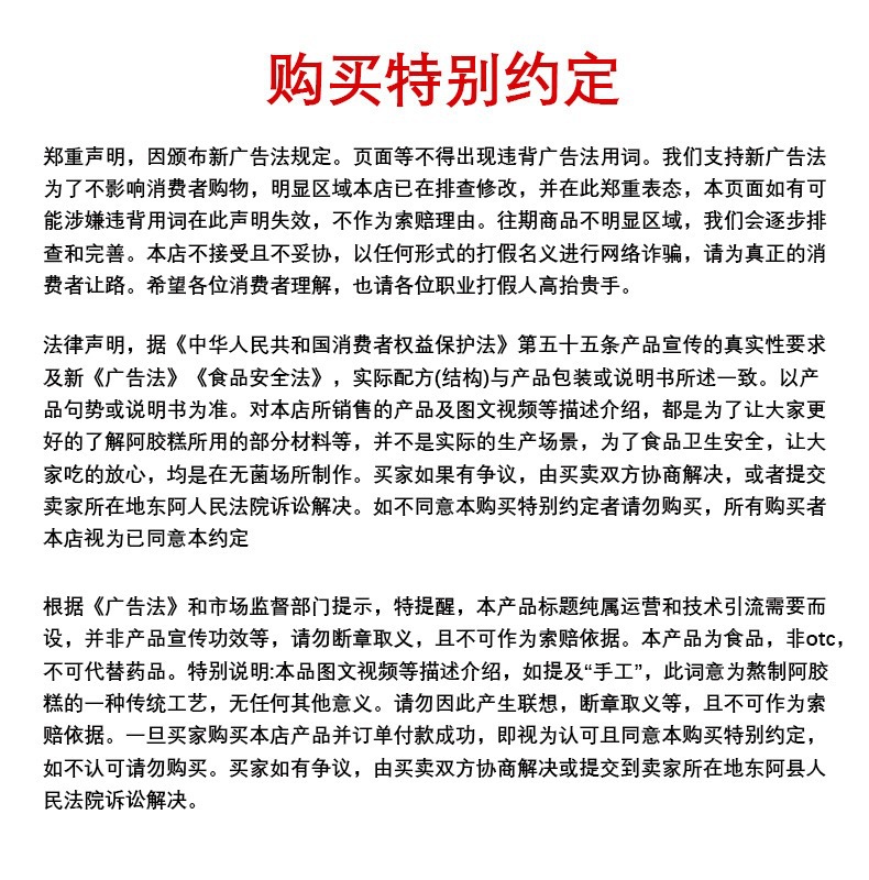![]() | Handmade bagged 500g donkey-hide gelatin cake | ¥36.5 / ≈ 444 ₽ | 99982 | 6110790434350 | |