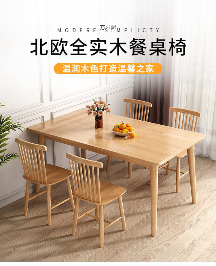 Обеденный стол из массива дерева, современный простой прямоугольный стол и стулья, оптовая продажа для небольших квартир