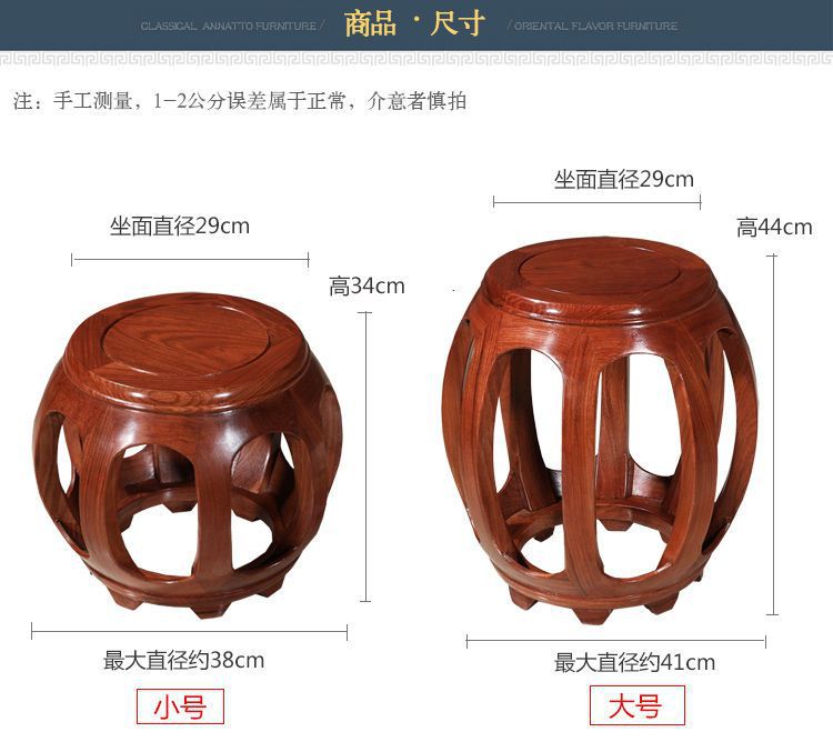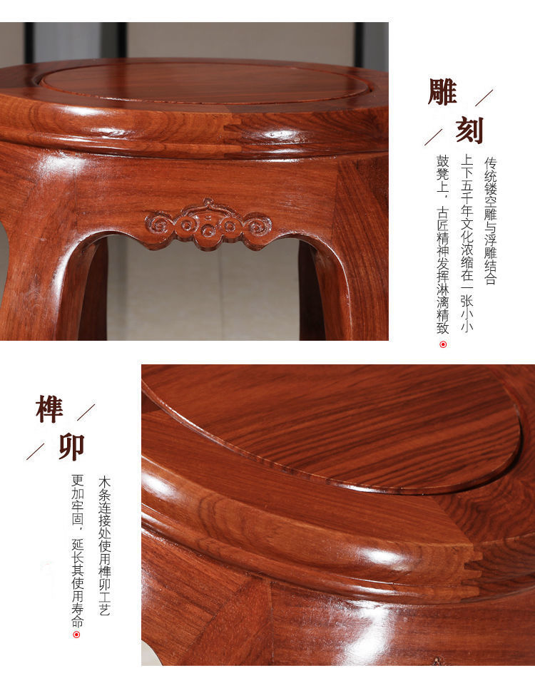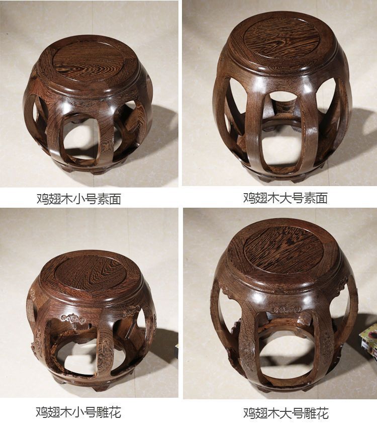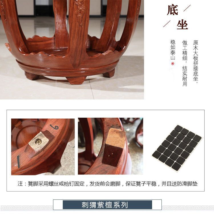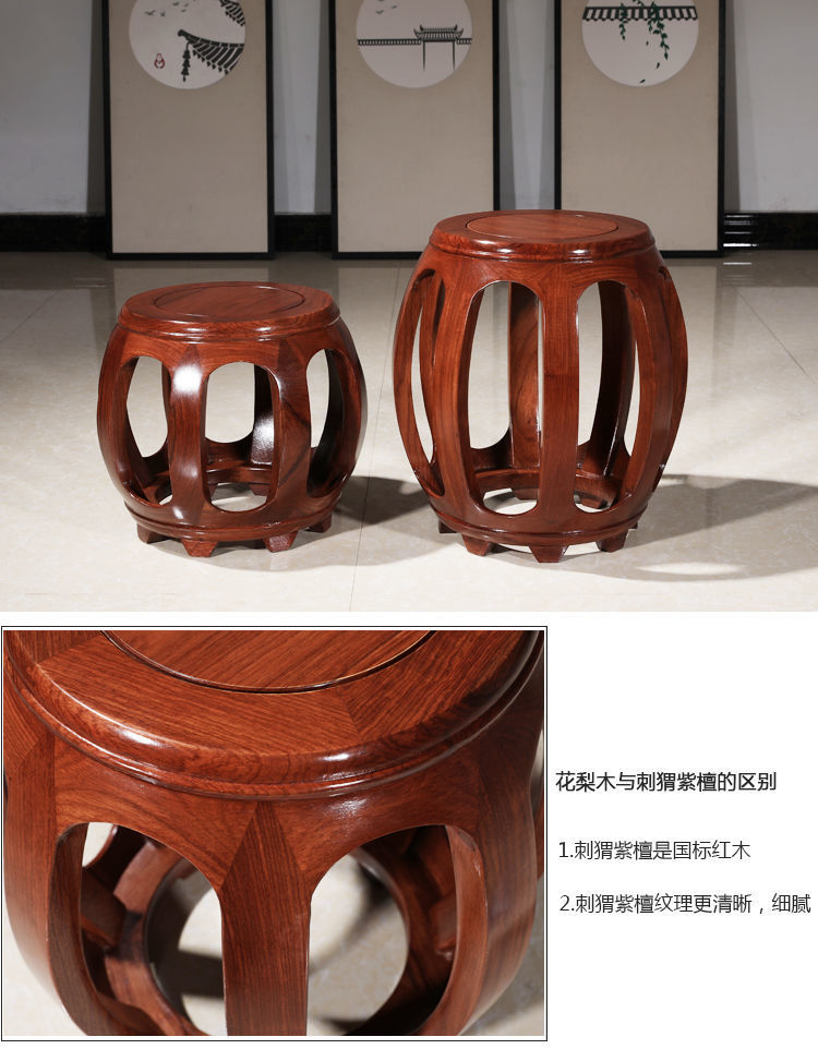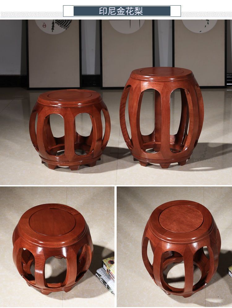 Барабанный табурет, антикварный круглый табурет из массива дерева, табурет из красного дерева, низкий табурет для дивана