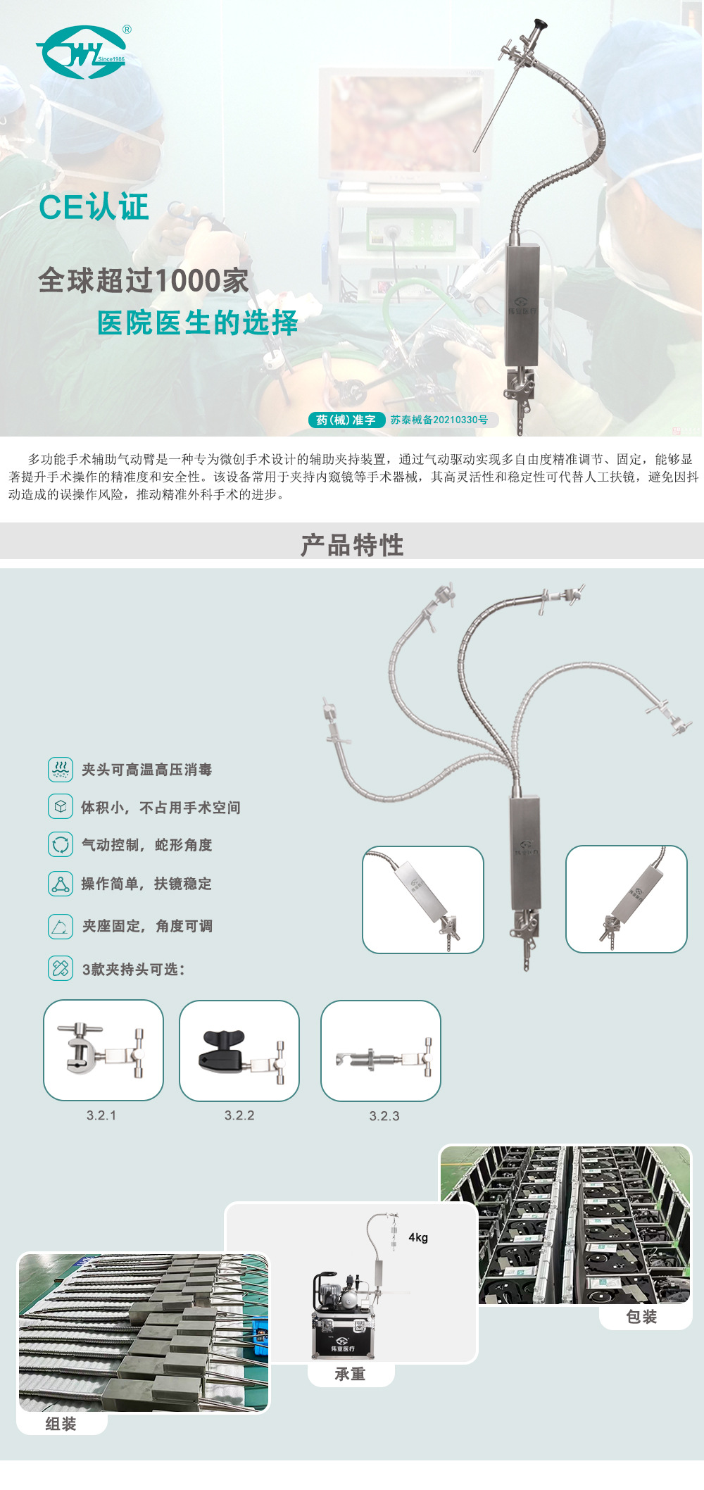Универсальная рука Weiyi, хирургический инструмент, пневматический кронштейн в форме змеи, пневматическое управление, быстрое запирание
