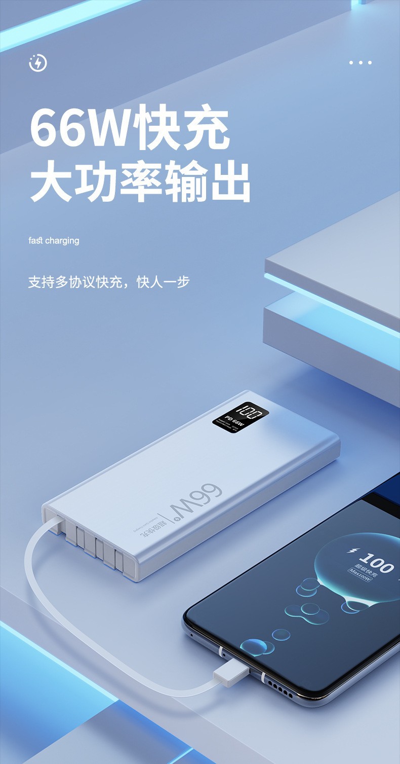 Большой емкости пауэрбанк 20000 мА 66W супербыстрая зарядка с кабелем