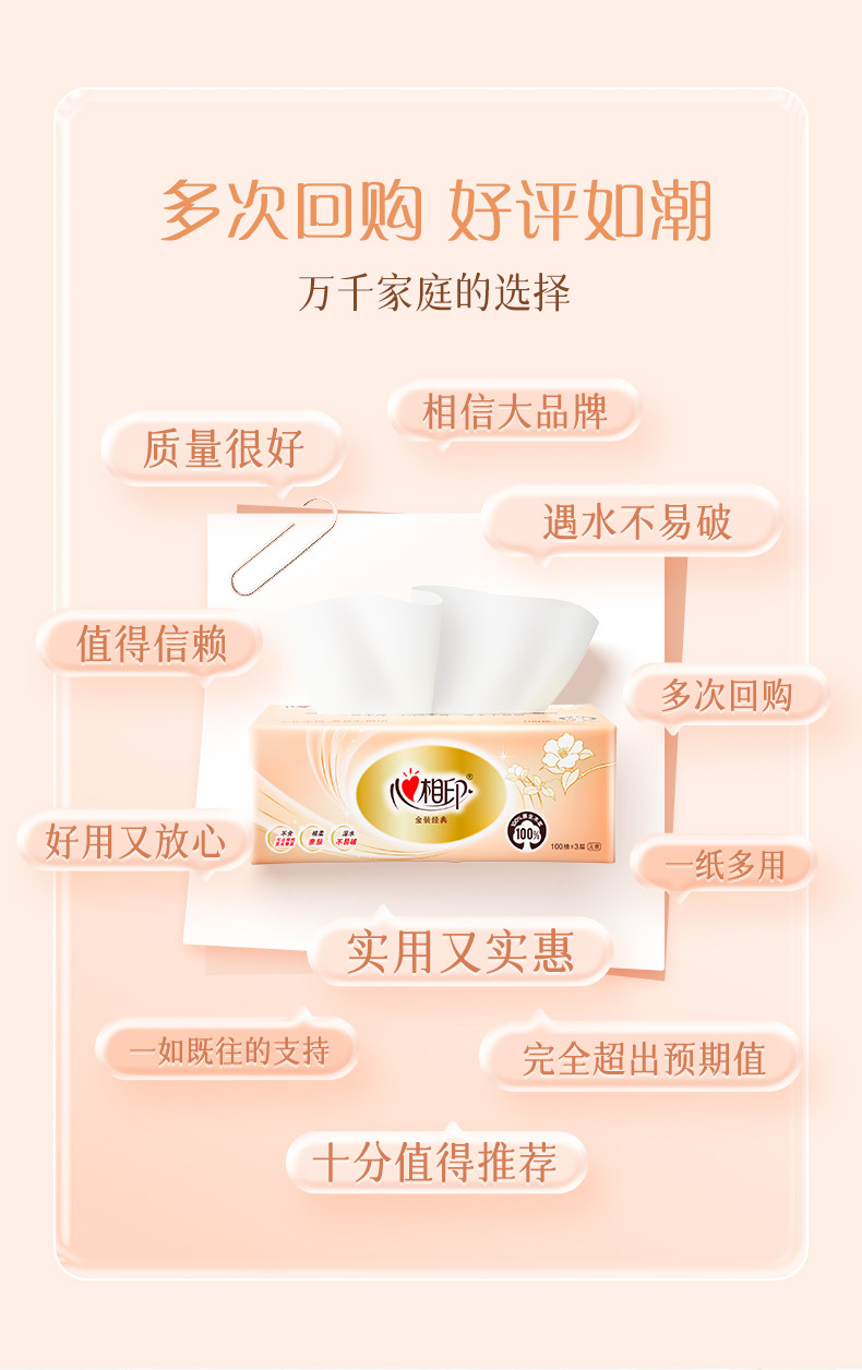 ![]() | Gold classic 3-ply 100-count tissues * 10 packs | ¥15.95 / ≈ 194 ₽ | 10000 | 6100948514515 | |