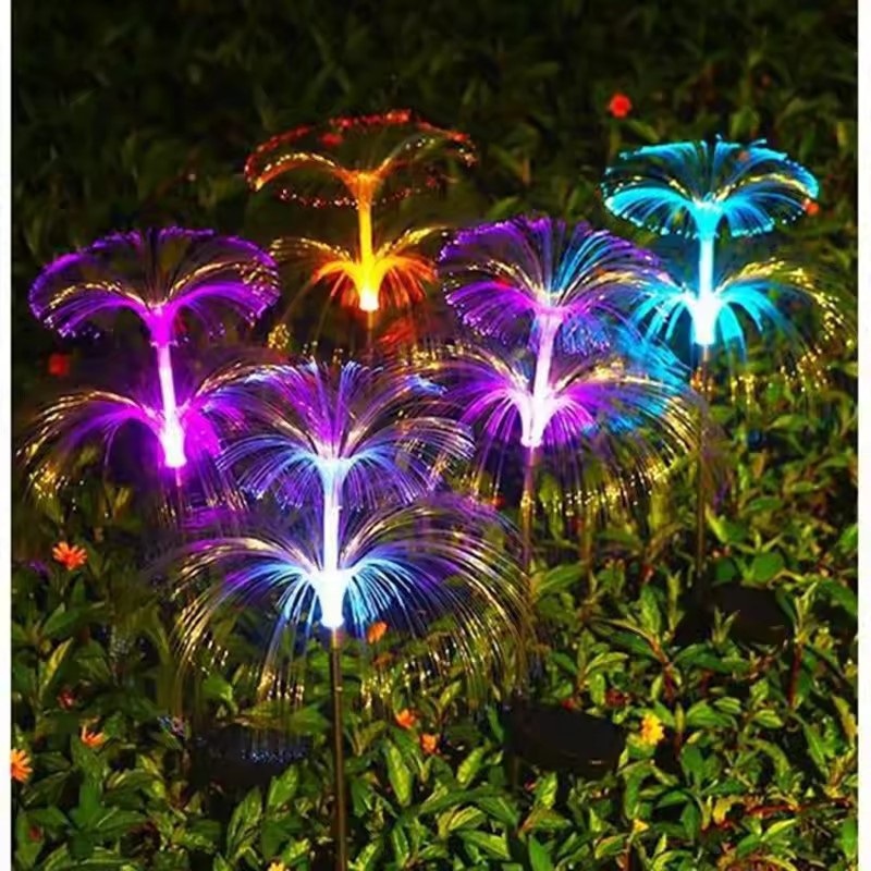Солнечная лампа медуза, оптовая продажа светодиодного ландшафтного светильника для двора с оптоволокном