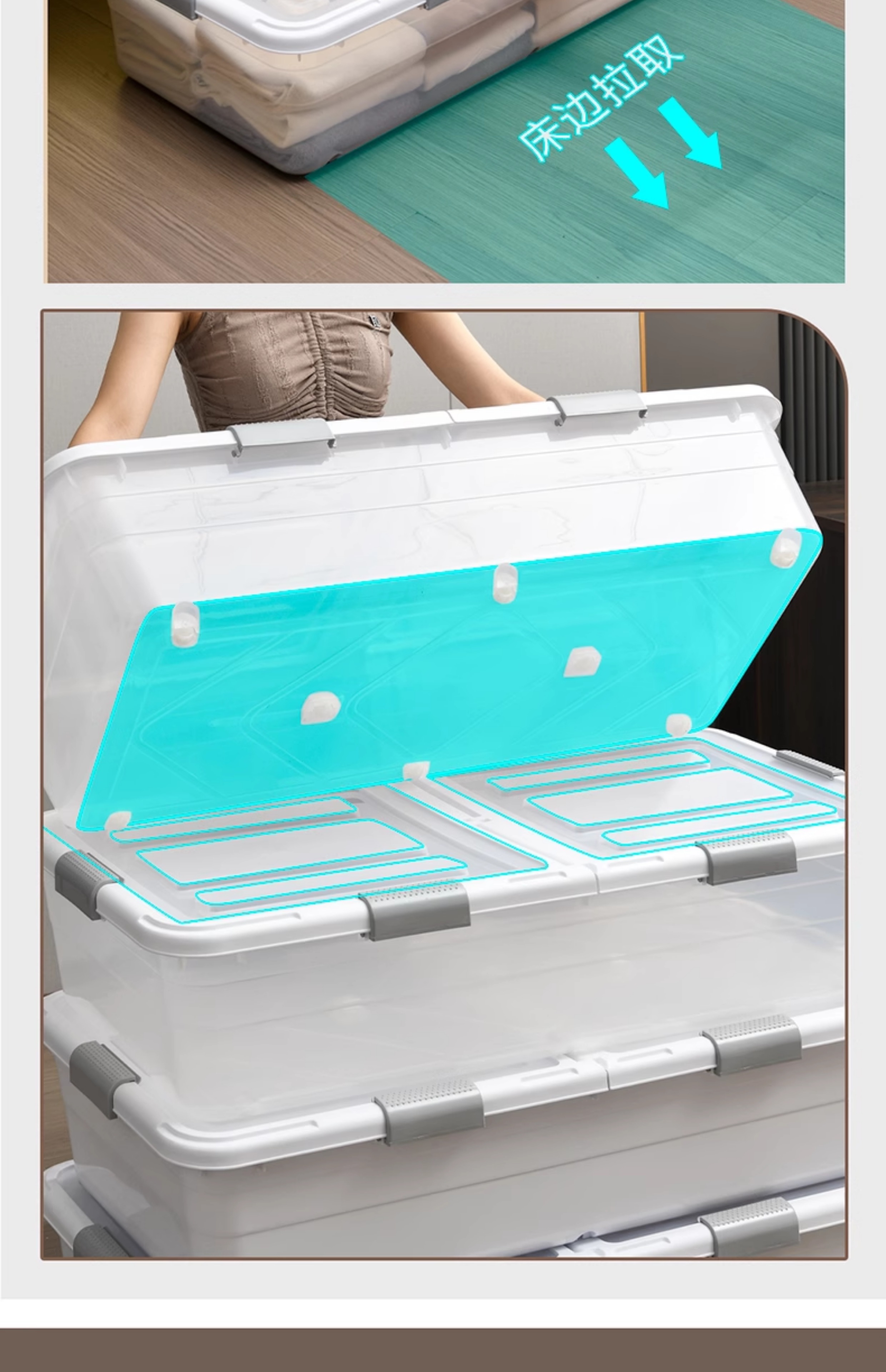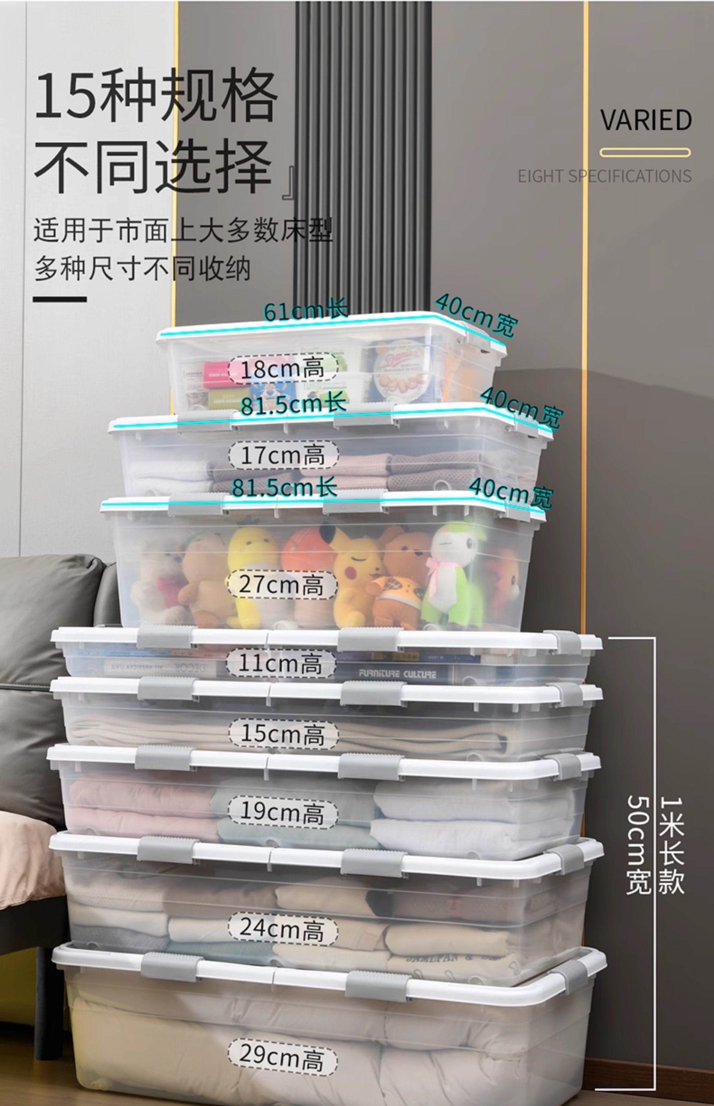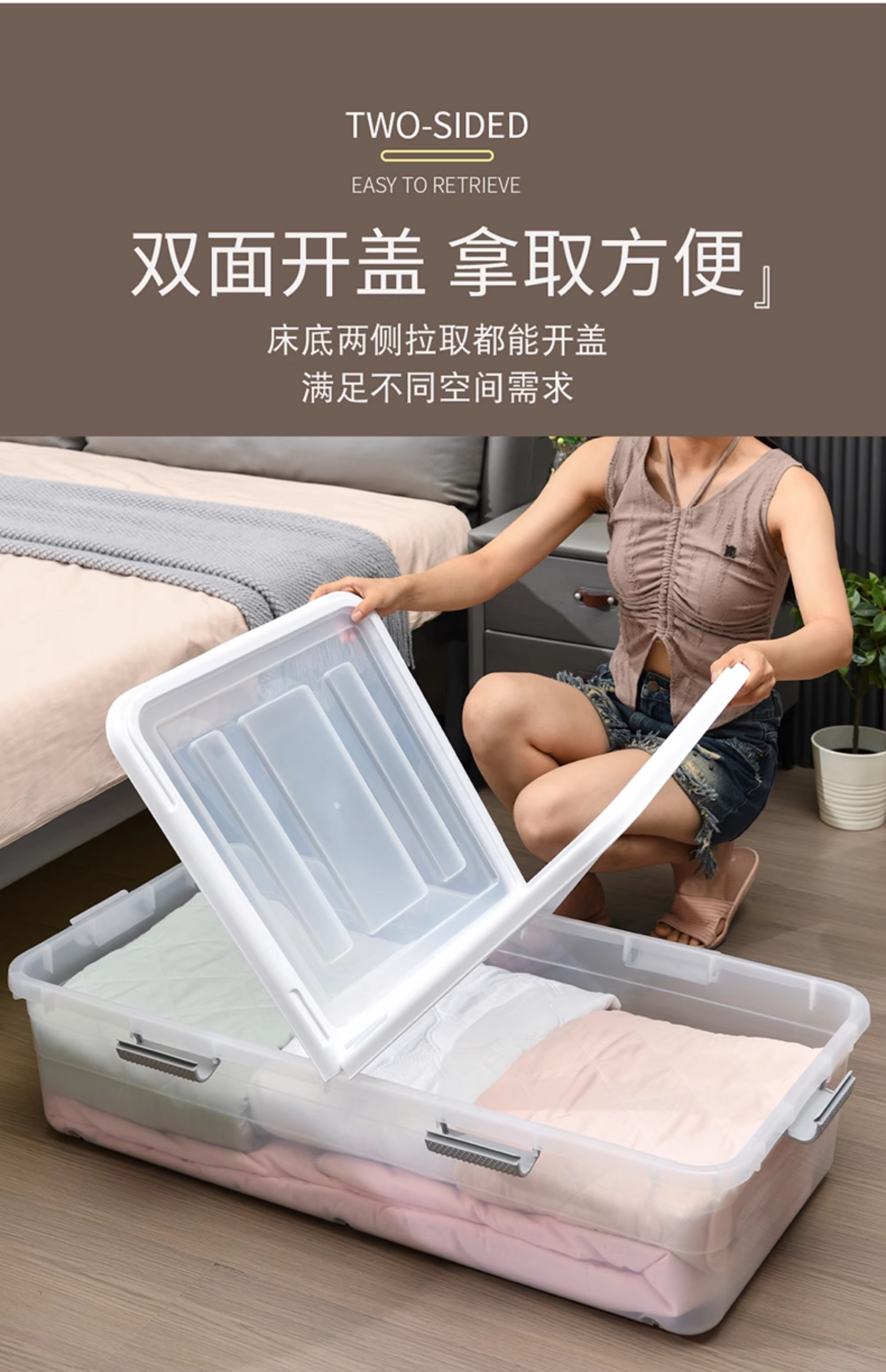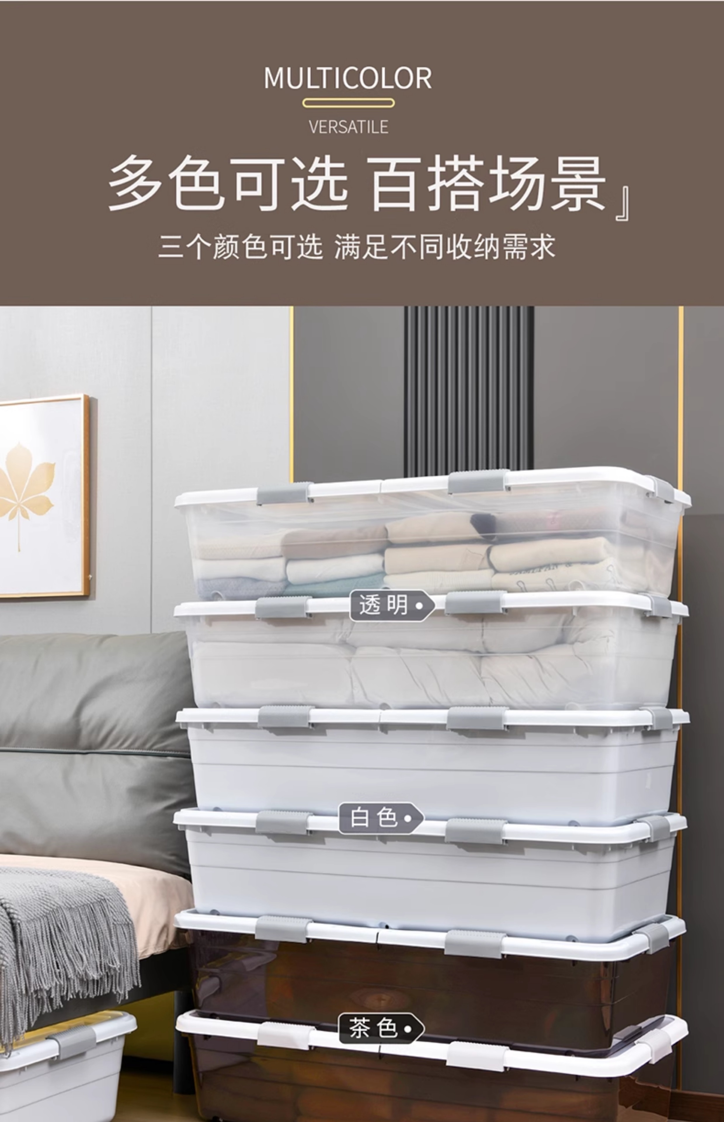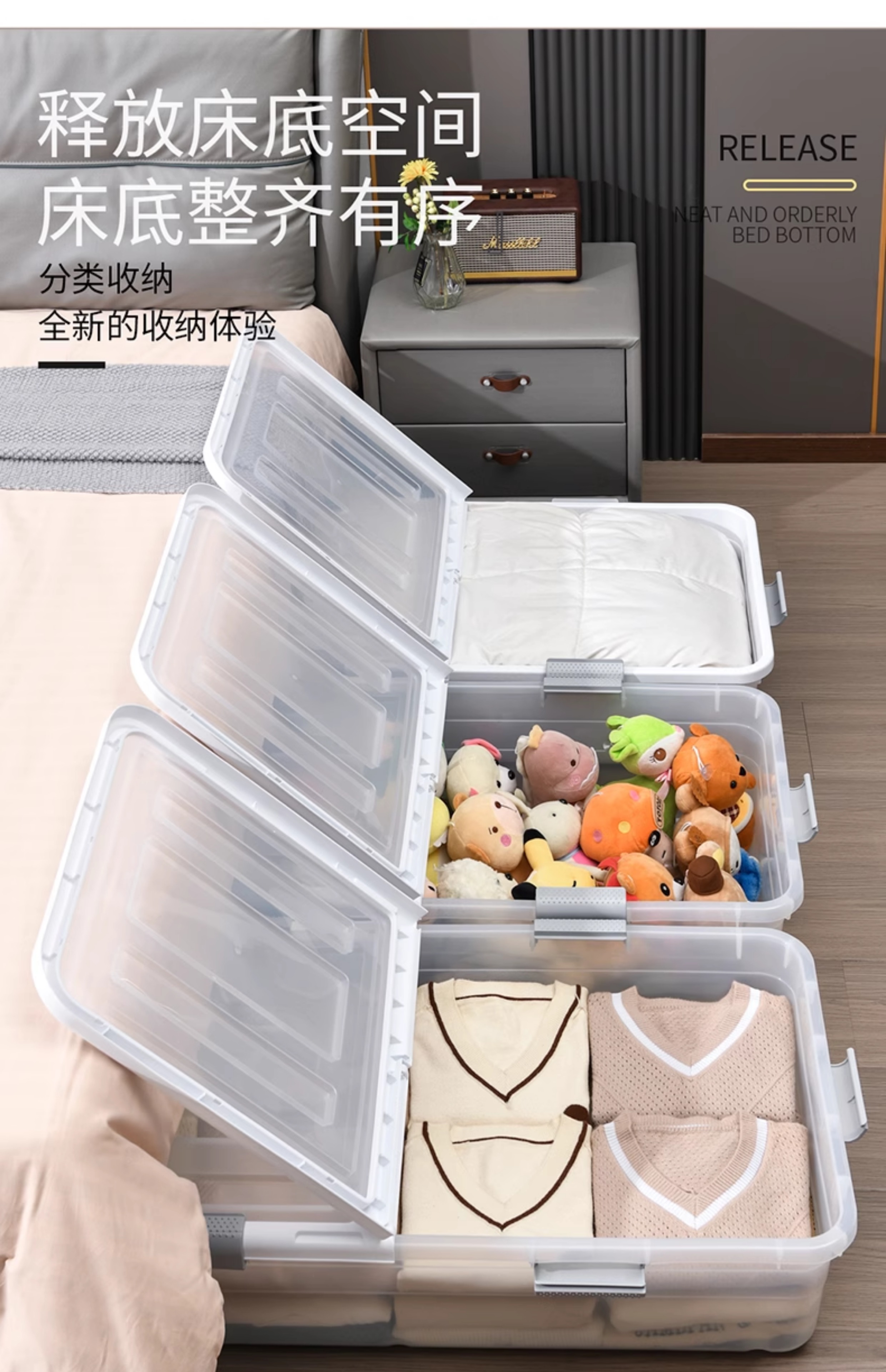 Коробка для хранения под кроватью, плоская с роликами, большая прозрачная коробка для хранения одежды, для общежития, для повседневного использования дома