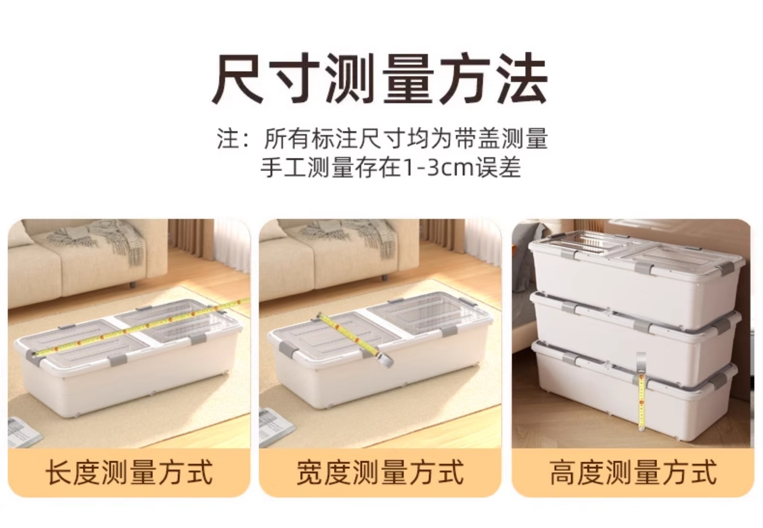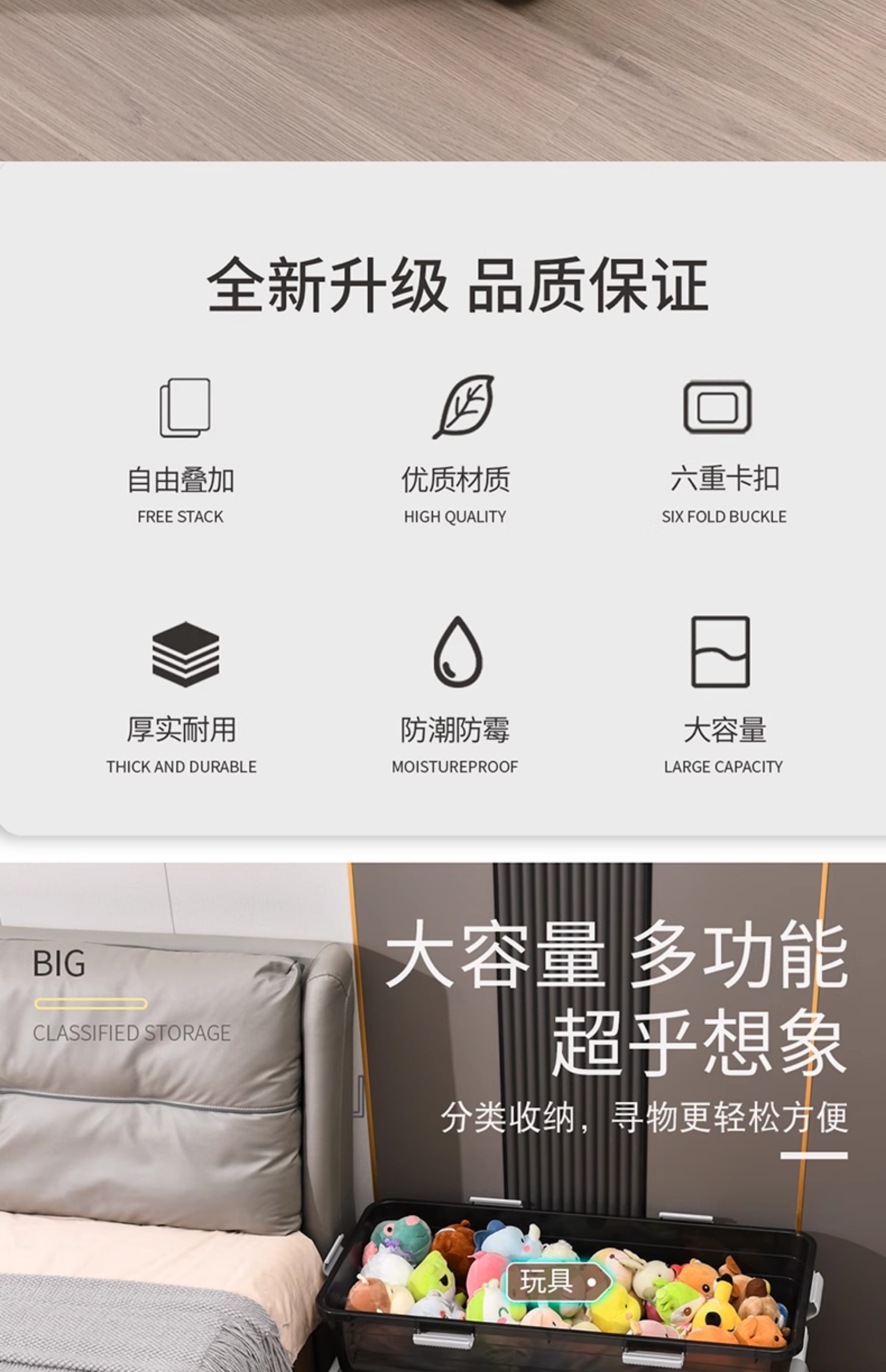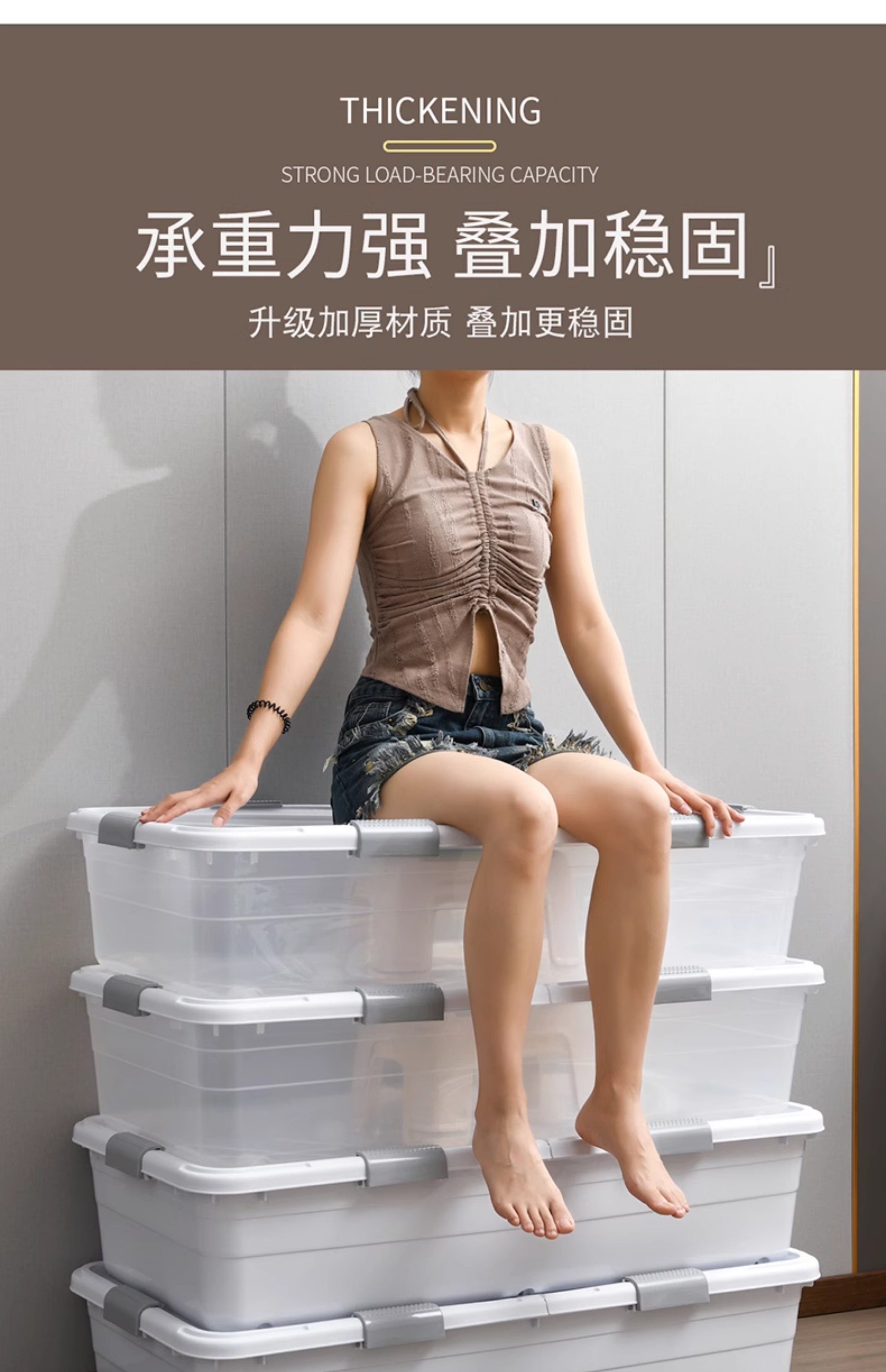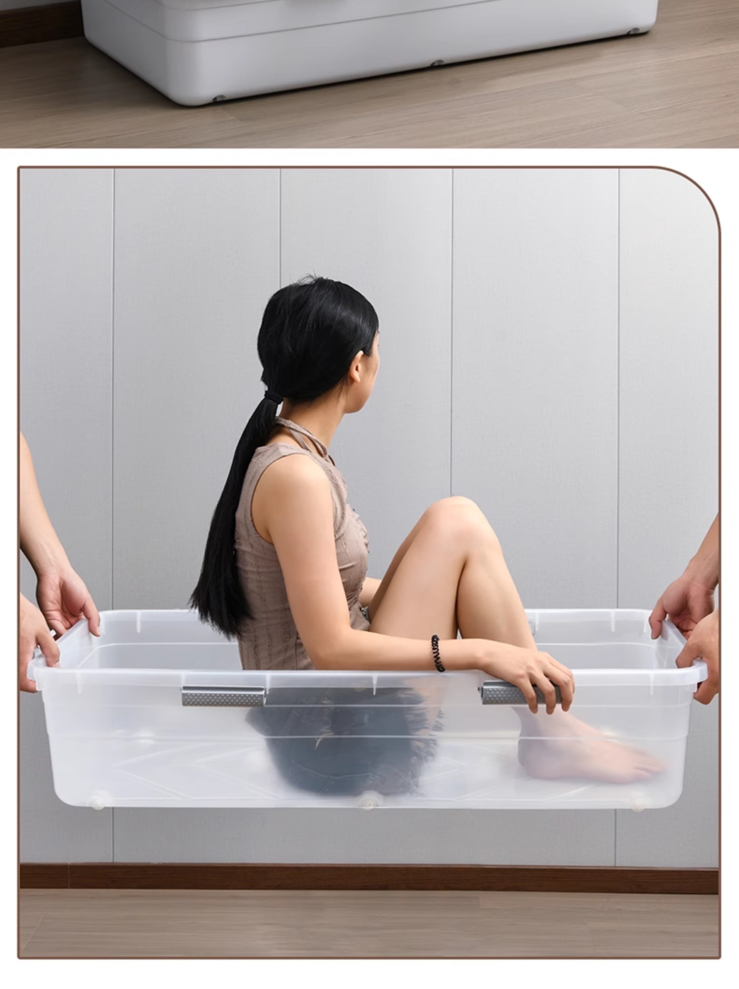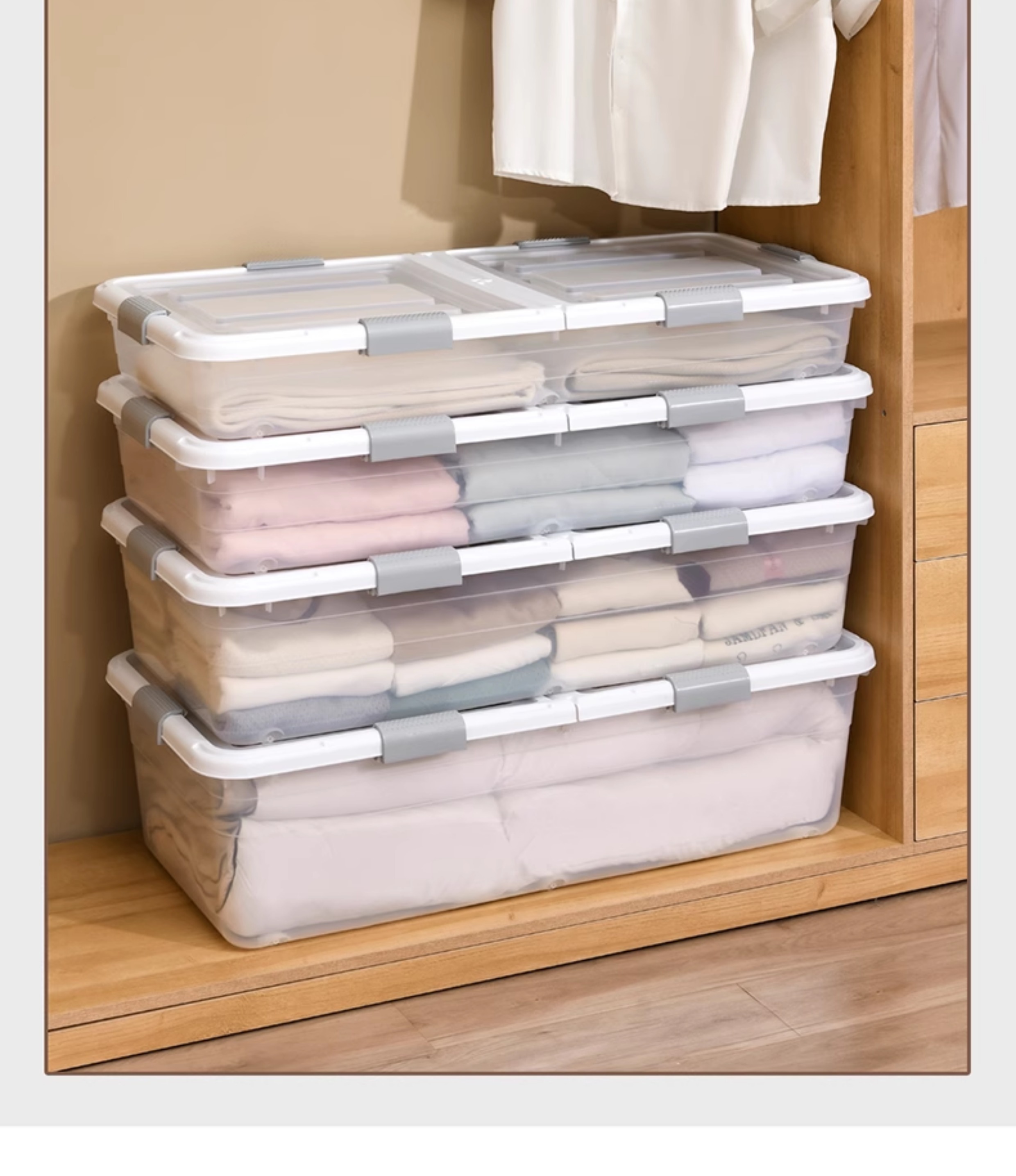 Коробка для хранения под кроватью, плоская с роликами, большая прозрачная коробка для хранения одежды, для общежития, для повседневного использования дома