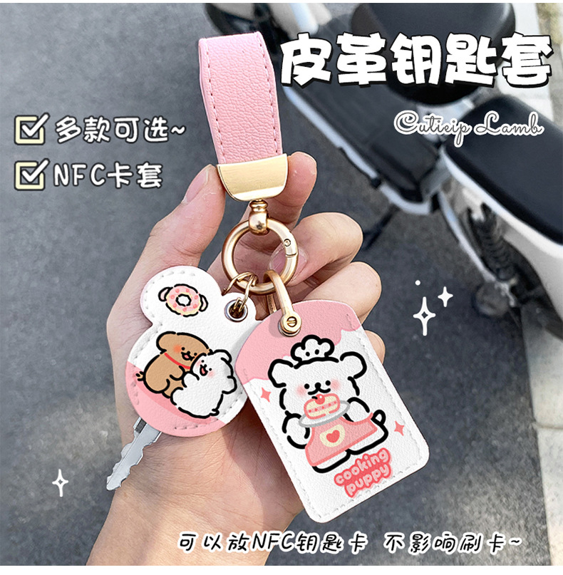 Милый мультяшный щенок, защитный чехол для ключа электромобиля, чехол для батареи, чехол для NFC-карты, чехол для сенсорного ключа