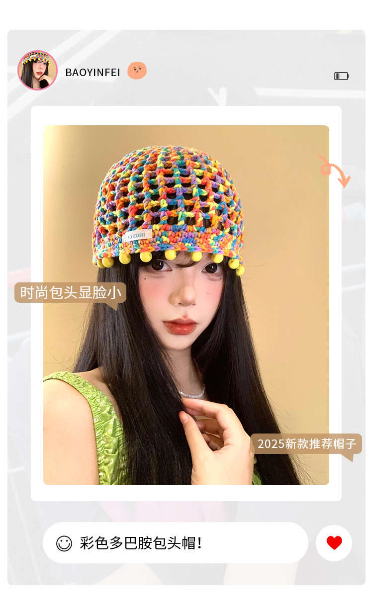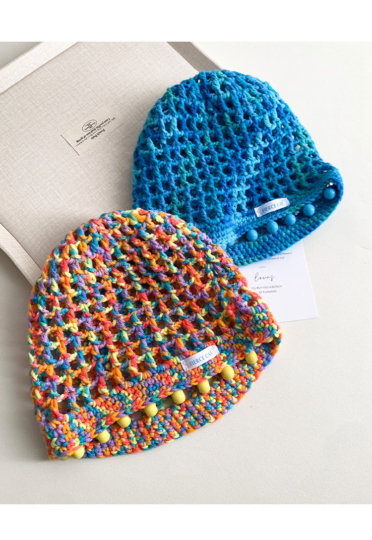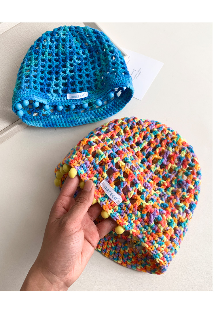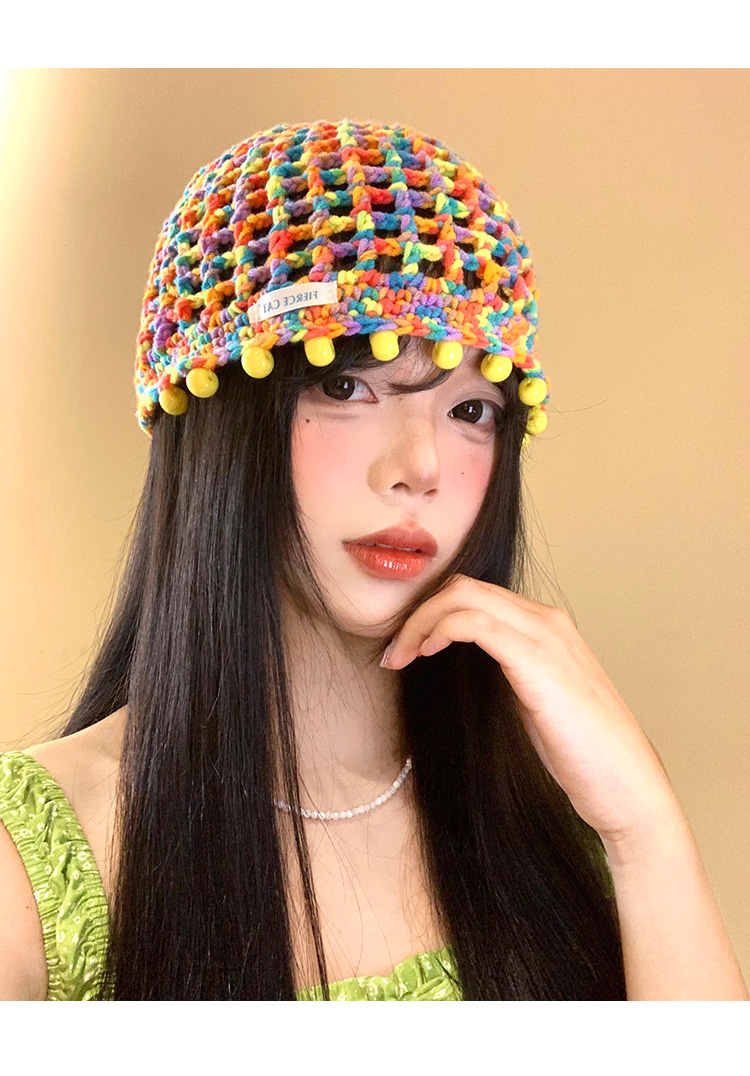 Цветная вязаная шляпа с бусинами для женщин лето 2025 новая тонкая дышащая шляпа с открытым лицом