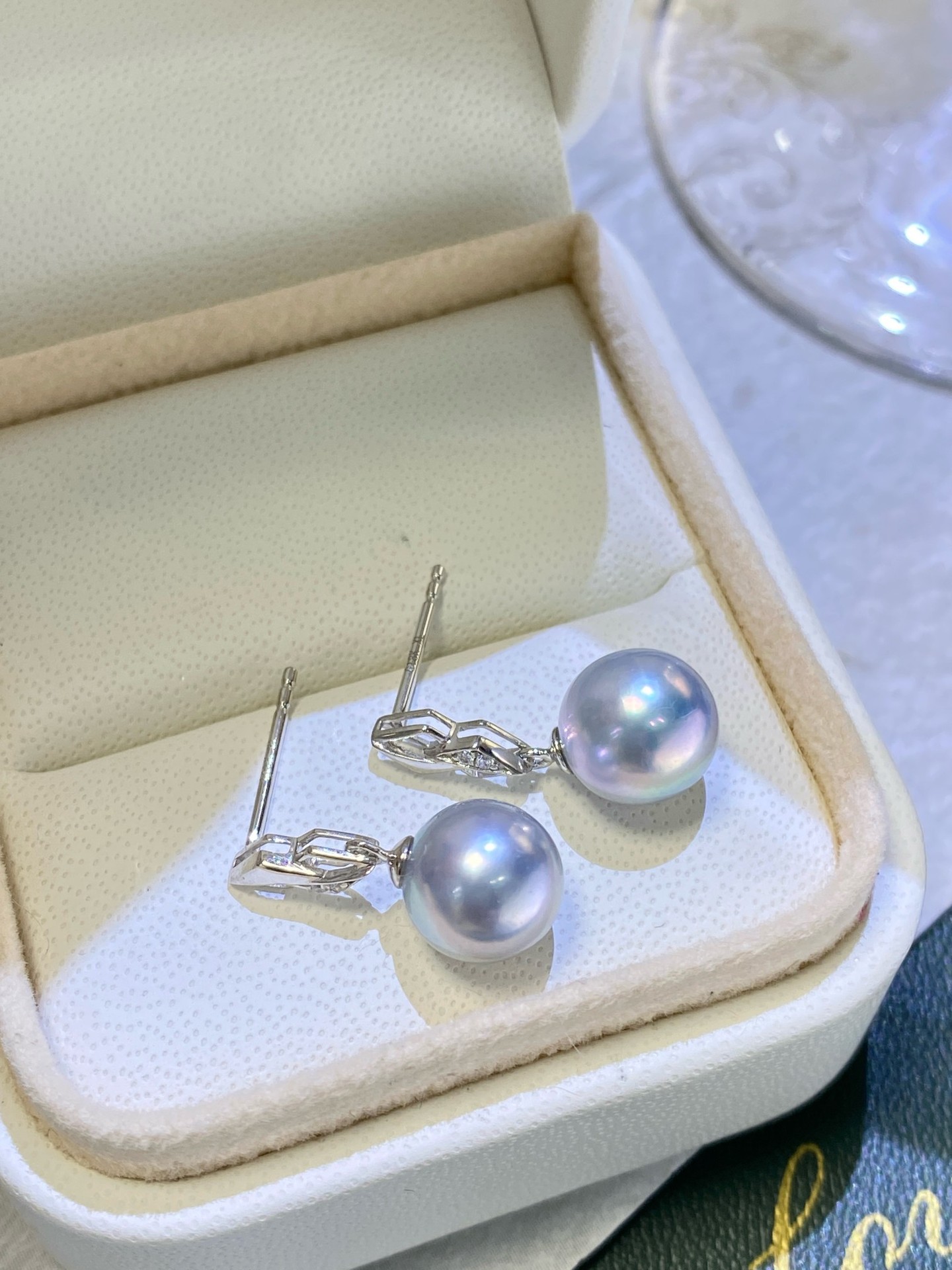 ✨✨G18k厚金海水珍珠耳钉💫💫 优雅百搭 经典日常 精致轻奢 8-9mm海水真多麻珍珠 皮光细腻透亮 圆润饱满 天然浓郁镜面银蓝色