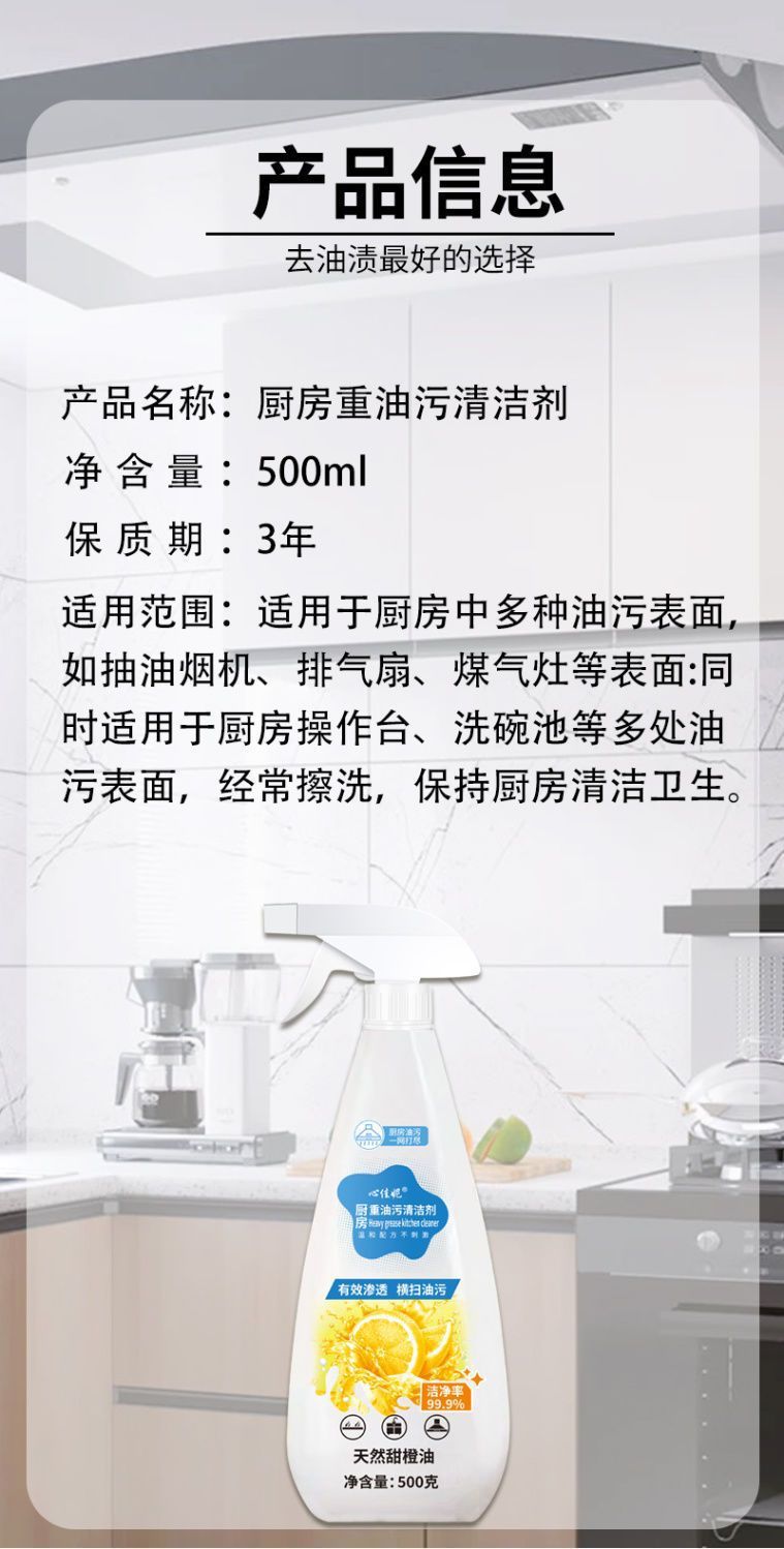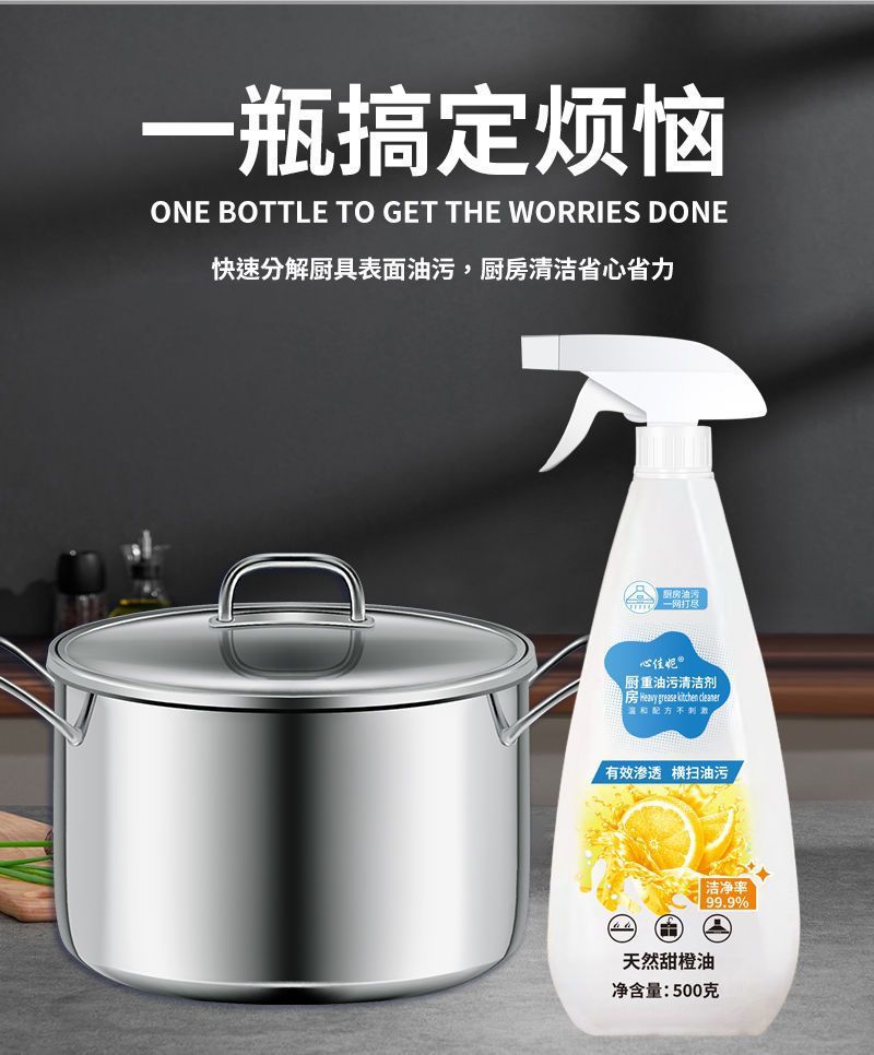Удалитель жировых пятен для кухни, средство для удаления жира, концентрированный очиститель для вытяжки с лимонным ароматом