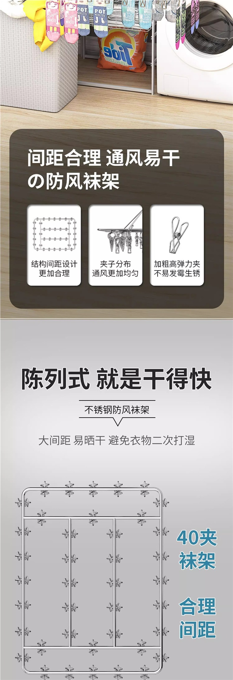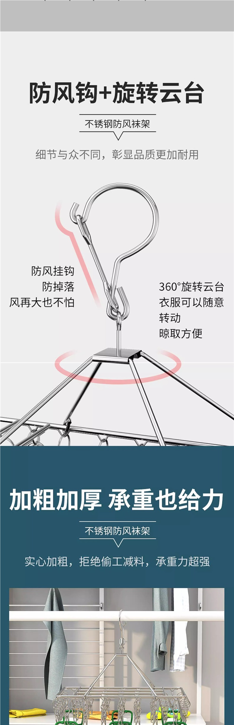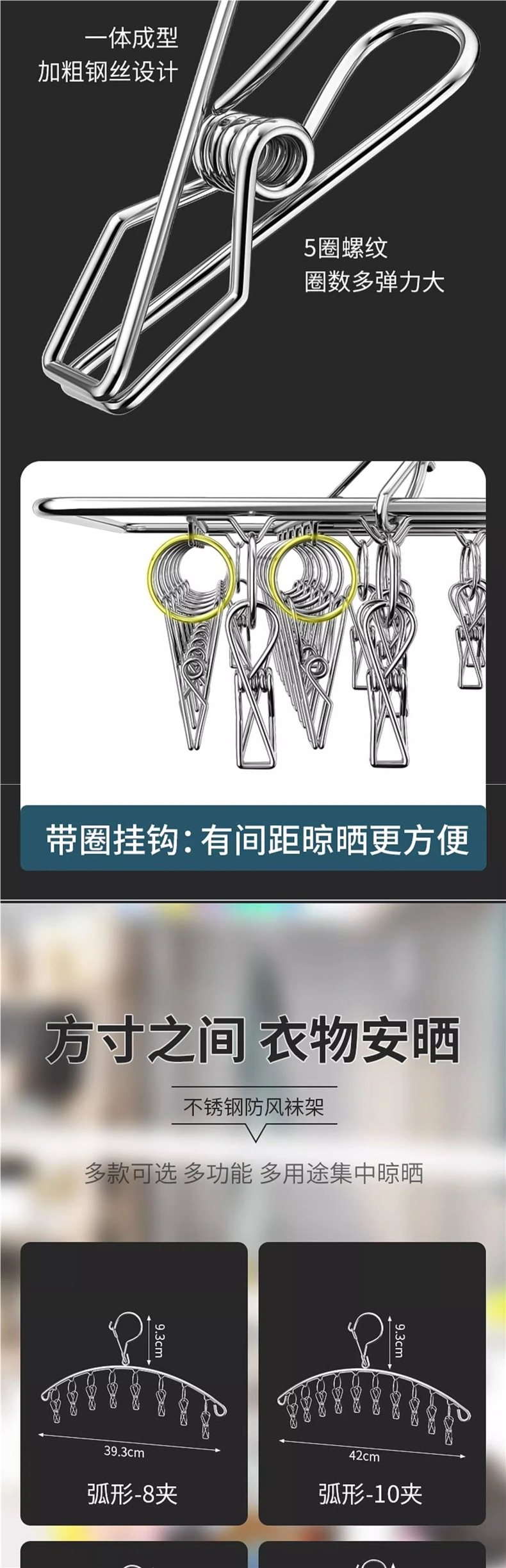 Сушилка для носок с несколькими зажимами, ветрозащитные зажимы для белья из нержавеющей стали, многофункциональная вешалка для сушки носок