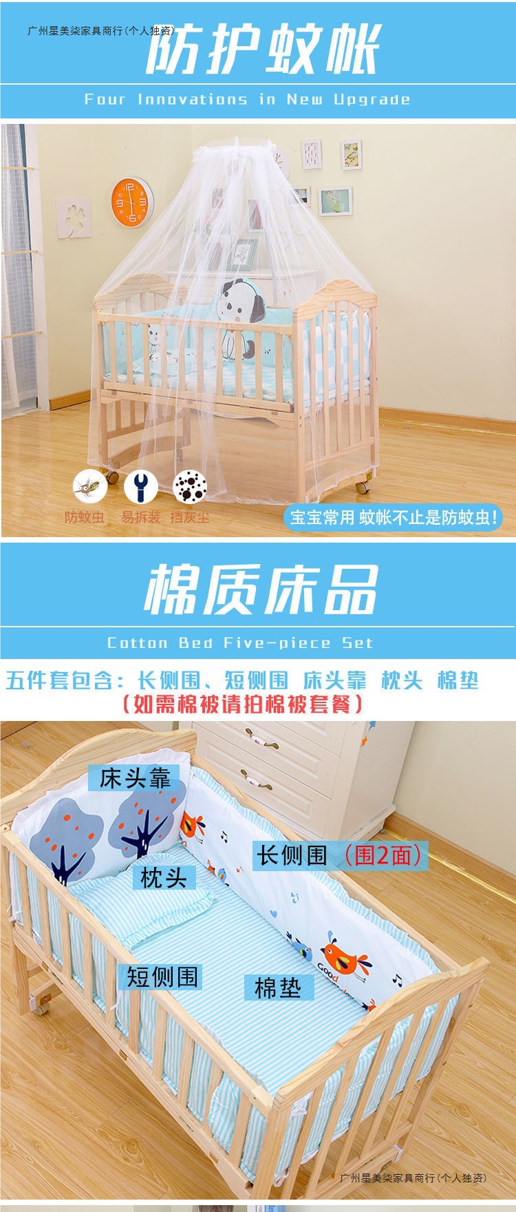 ![]() | Bed + mosquito net + five-piece set + brown mat (remarks on color) | Double layer can be lengthened (102*60) 0-5 years old | ¥361.0 / ≈ 4 391 ₽ | 498 | 5841279029047 | |