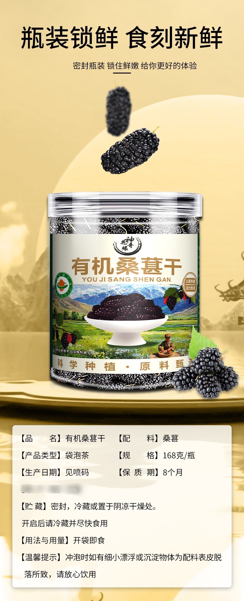 ![]() | Organic dried mulberries 168g | 1шт: ¥11.00, 2шт: ¥9.50, 1000шт: ¥9.00 | 25961 | 6010263903521 |
