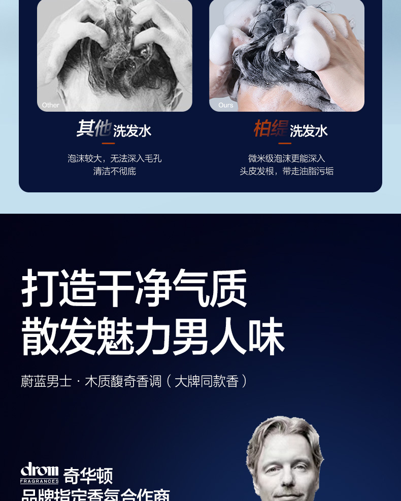 Шампунь Boti для мужчин, специальный, против перхоти, против зуда, контроль масла, длительный, пушистый, голубой одеколон, парфюмированный шампунь 4