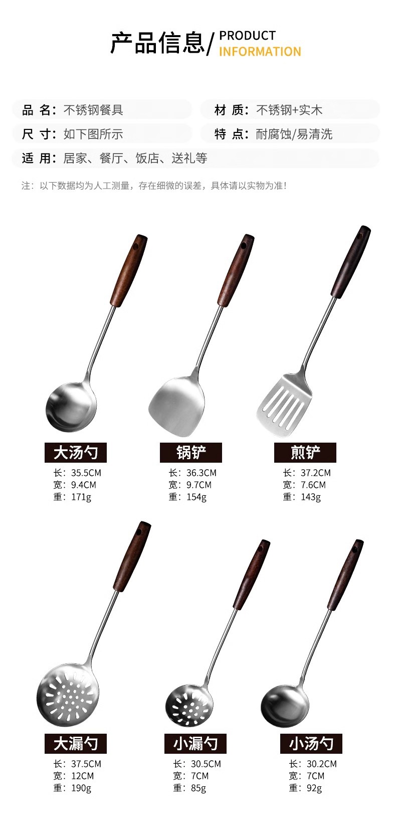 📦 | Stainless steel [spatula + soup spoon + colander] thickened | ¥32.57 / ≈ 396 ₽ | 200000 | 5841252492470 | |