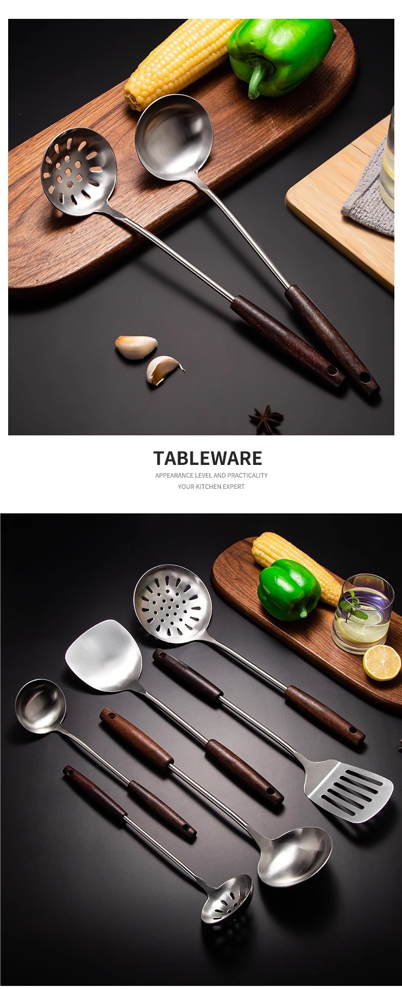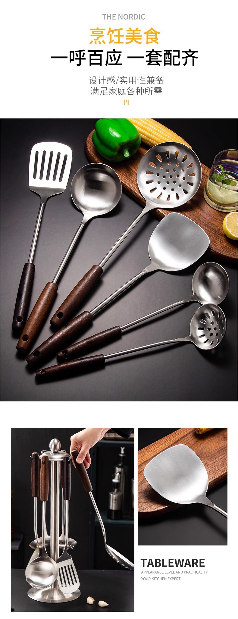 Утолщенная нержавеющая стальная лопатка для готовки, сковорода, ложка для супа, дуршлаг, набор кухонной утвари, кухонный шеф-повар
