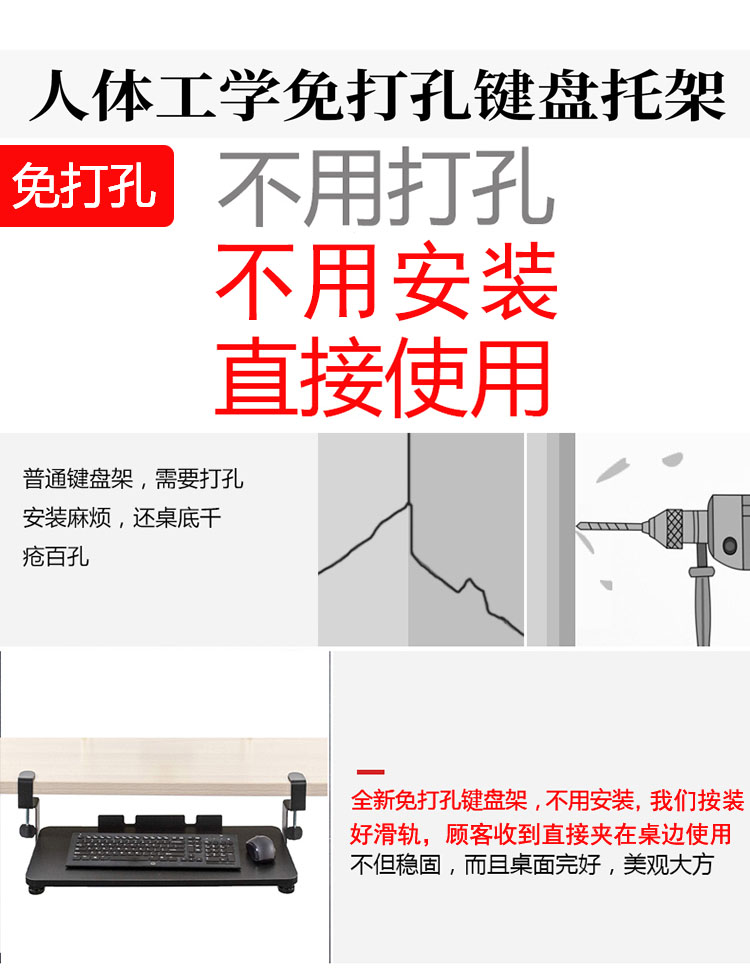 Подставка для клавиатуры без пробивания крепление для клавиатуры без установки настольная клипса для компьютера телескопическая выдвижная полка