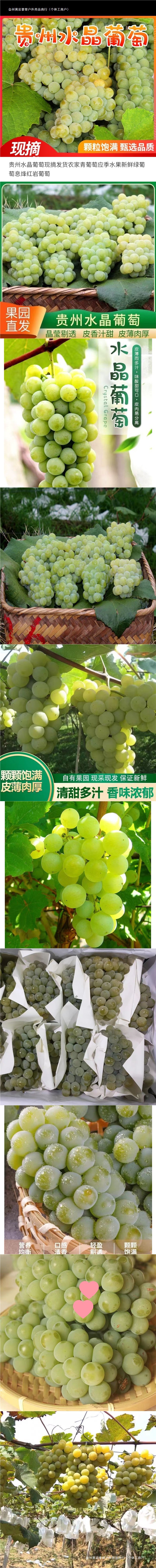 Свежесобранный кристальный виноград из Гуйчжоу для доставки, фермерский зеленый виноград, сезонный фрукт, свежий зеленый виноград, простая упаковка Шашаньци