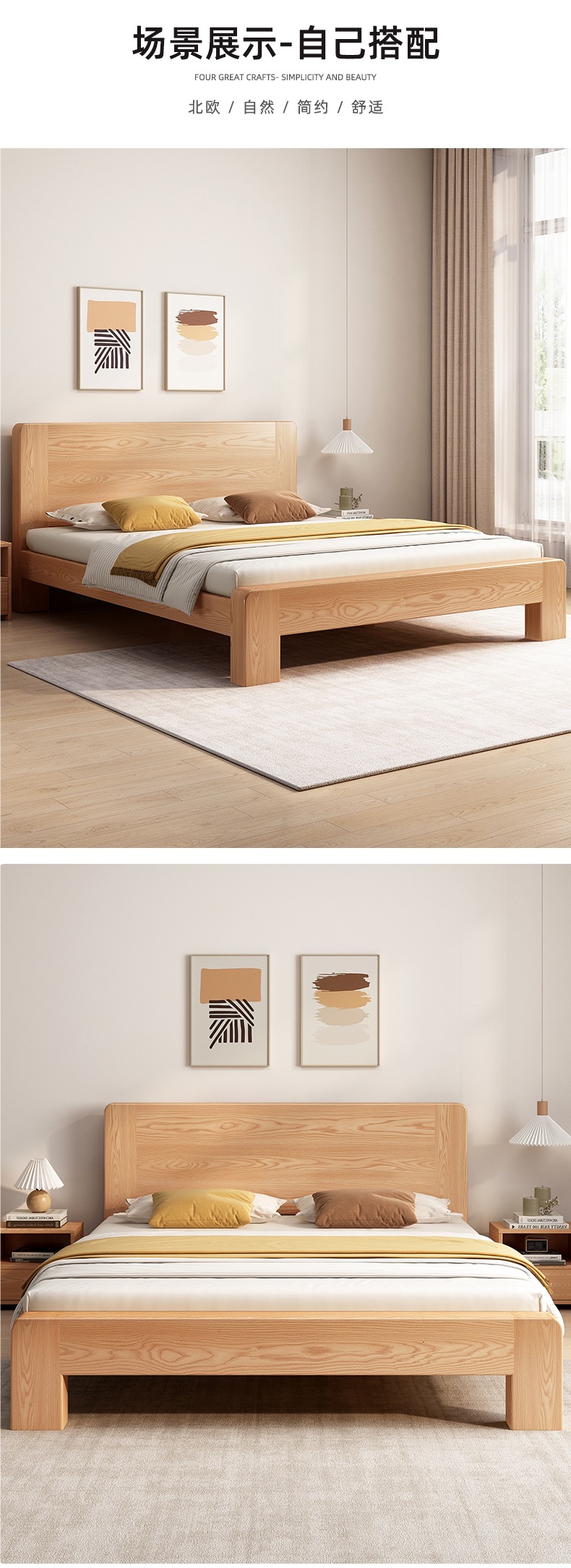 Современная минималистская кровать из массива дерева 1.5м, двойная, 1.8м для спальни, экономичная односпальная кровать для аренды