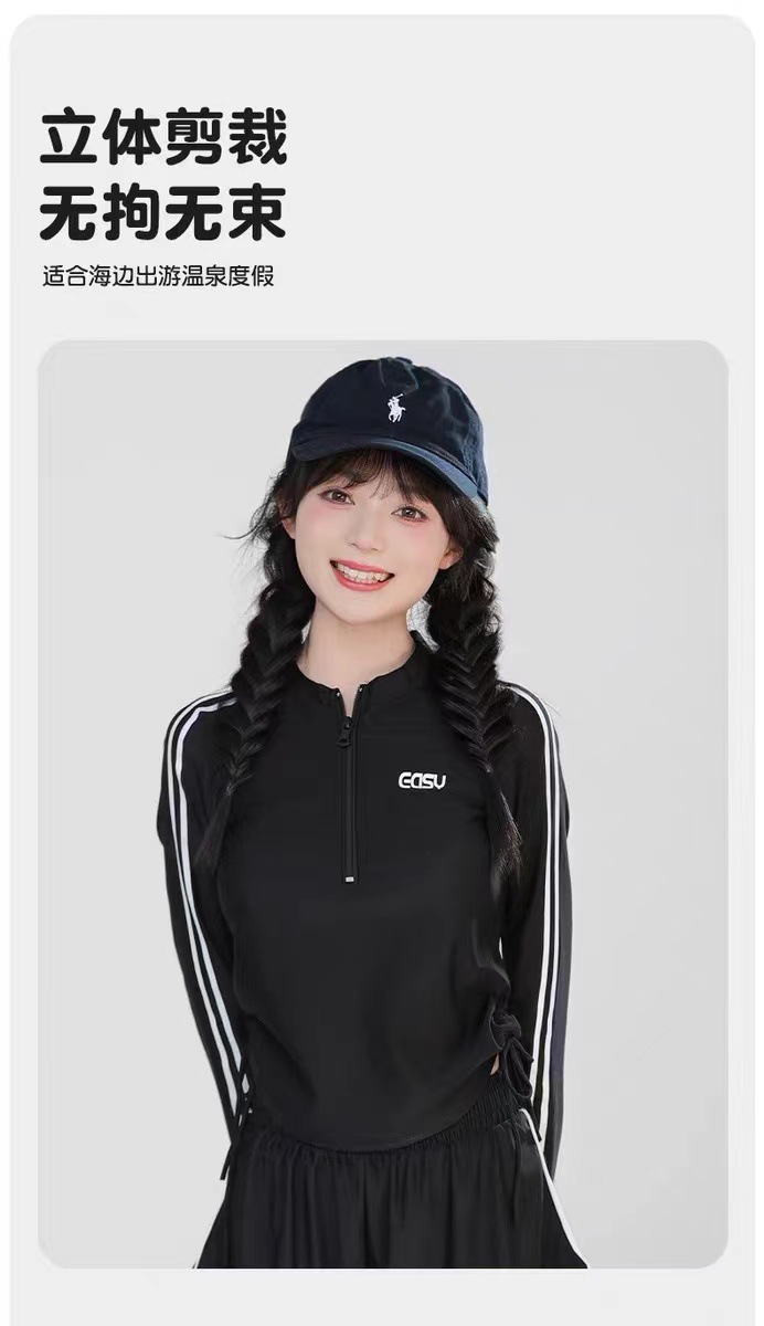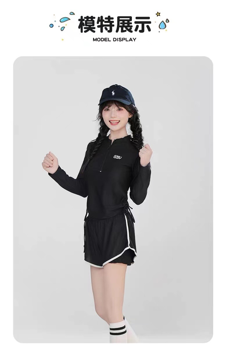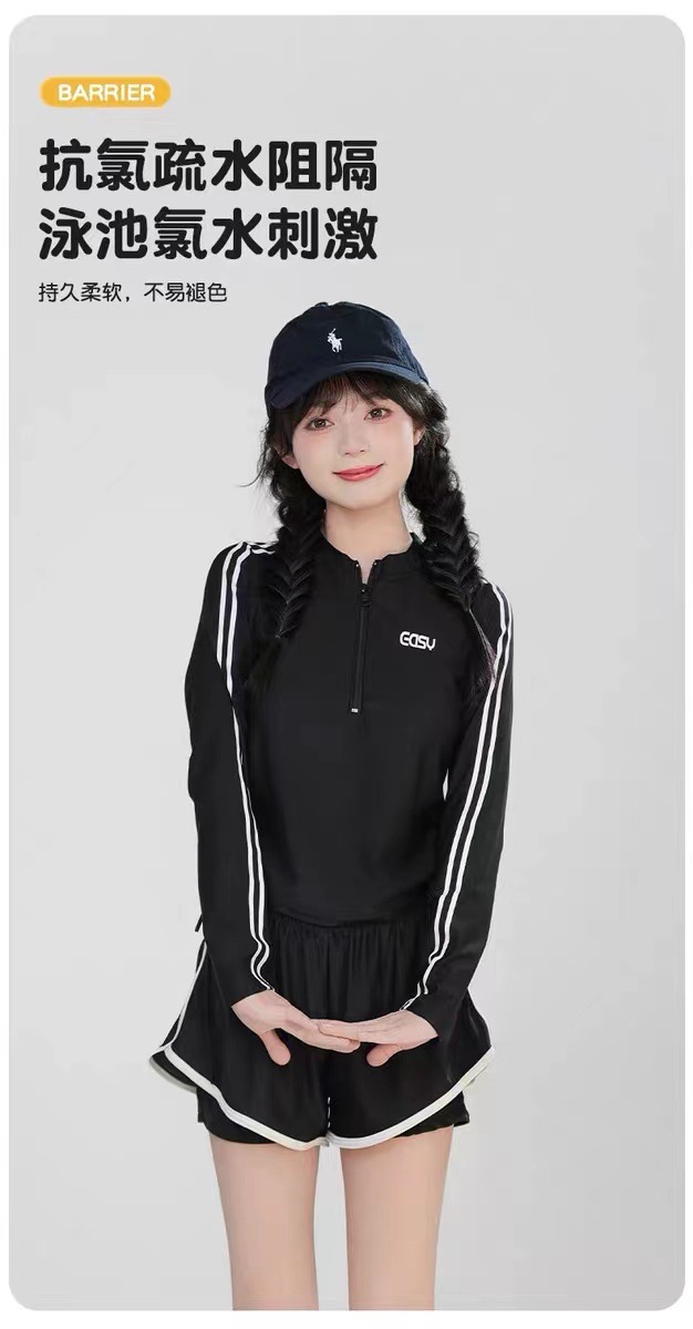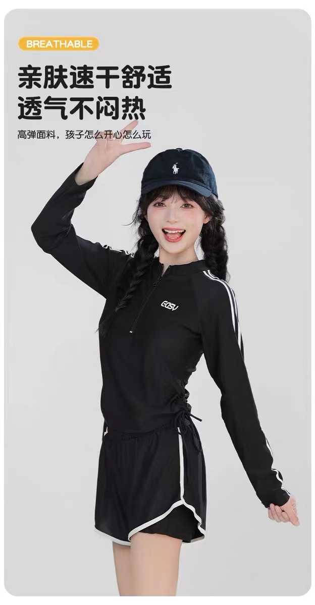Раздельный купальник для девочек, новый, для учеников средней школы, с длинными рукавами