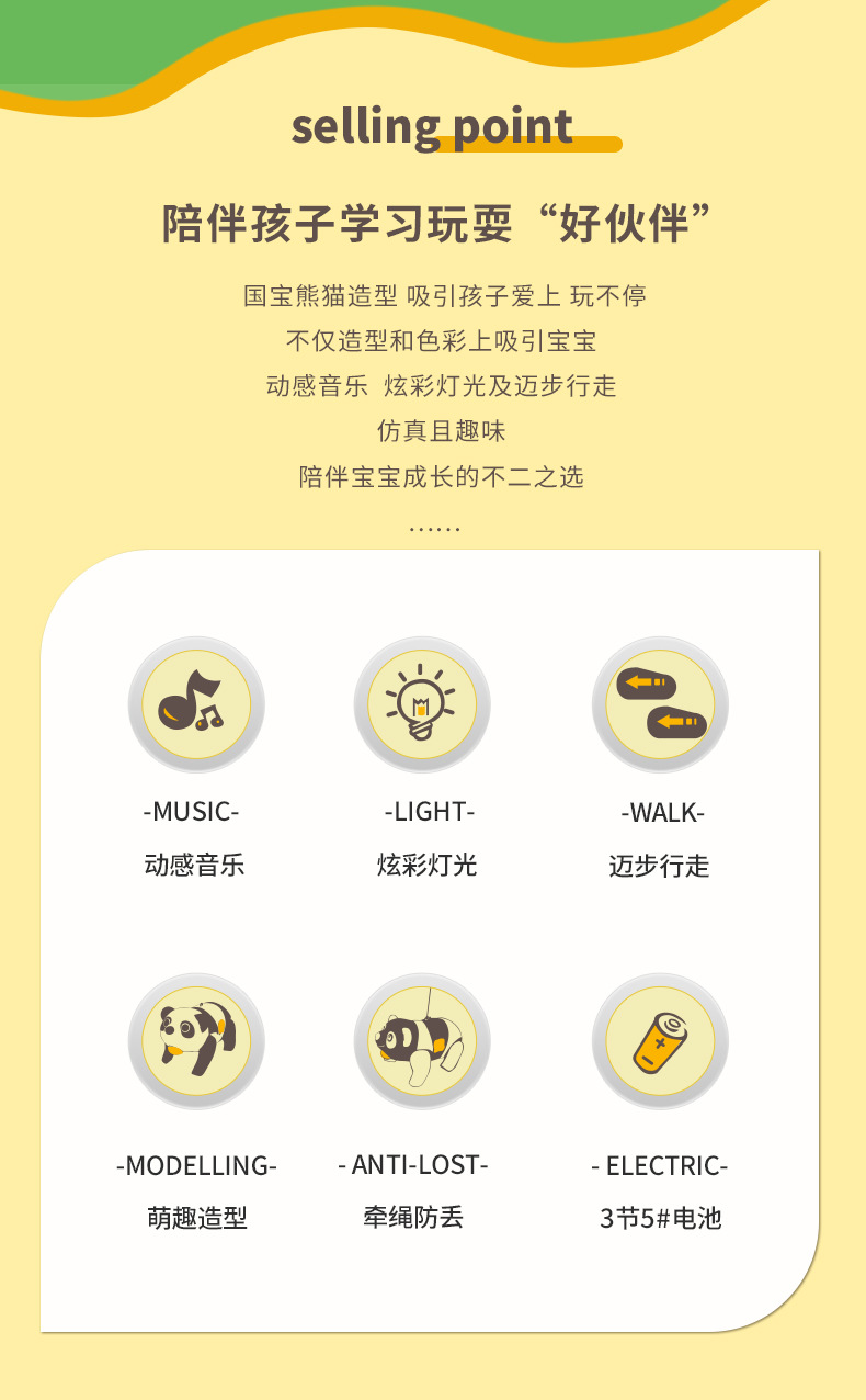 Электрическая панда на поводке, светящаяся игрушка для детей, оптовая продажа