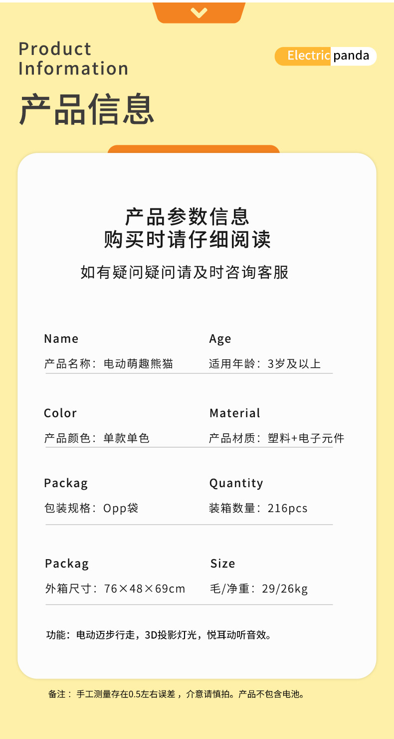 ![]() | Electric music panda (bring your own 3 aa batteries) | ¥6.9 / ≈ 84 ₽ | 67529 | 6010188218959 | |