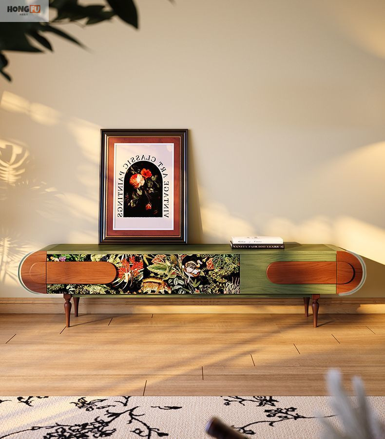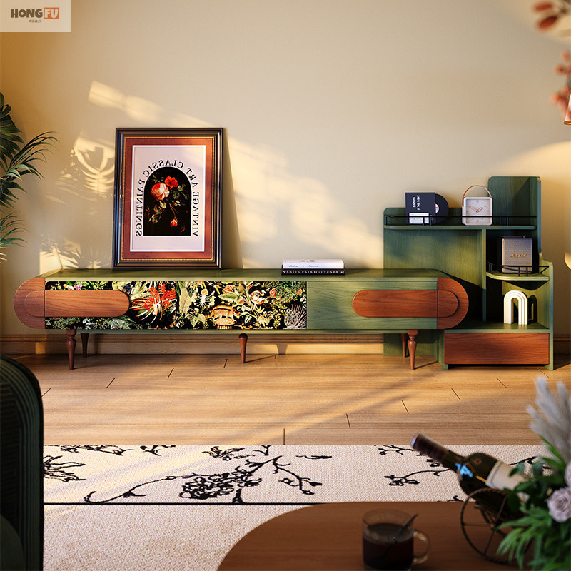 Французский ретро ТВ-кабинет из массива дерева для малогабаритной квартиры антикварный стиль комбинация