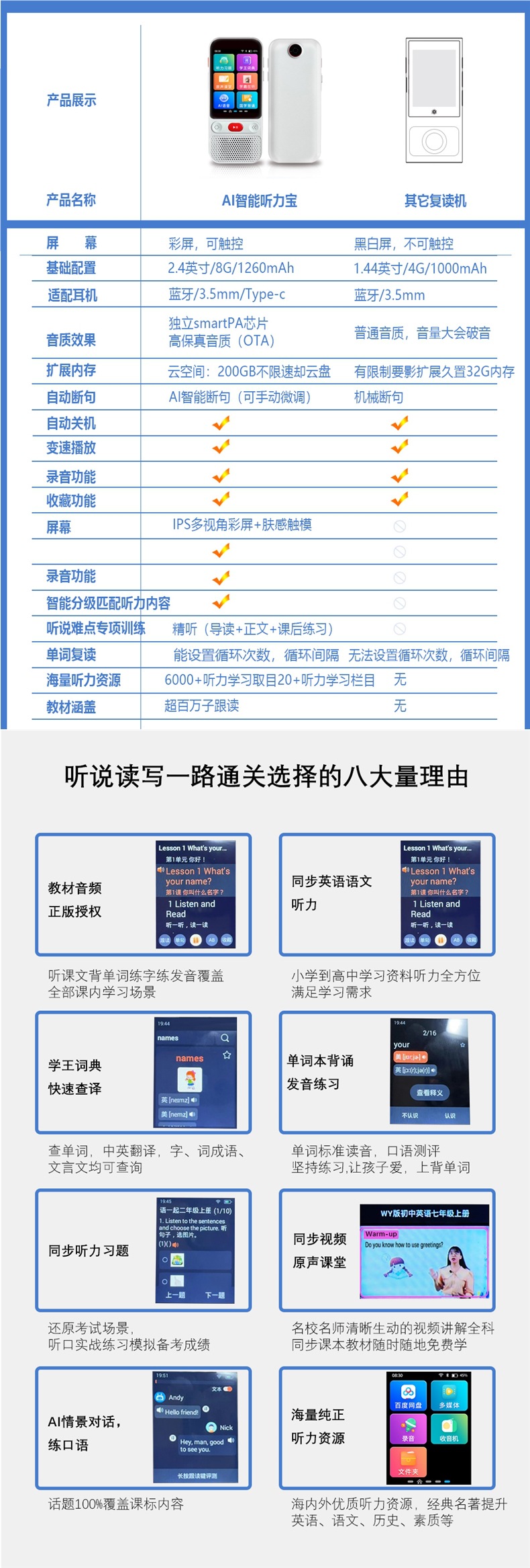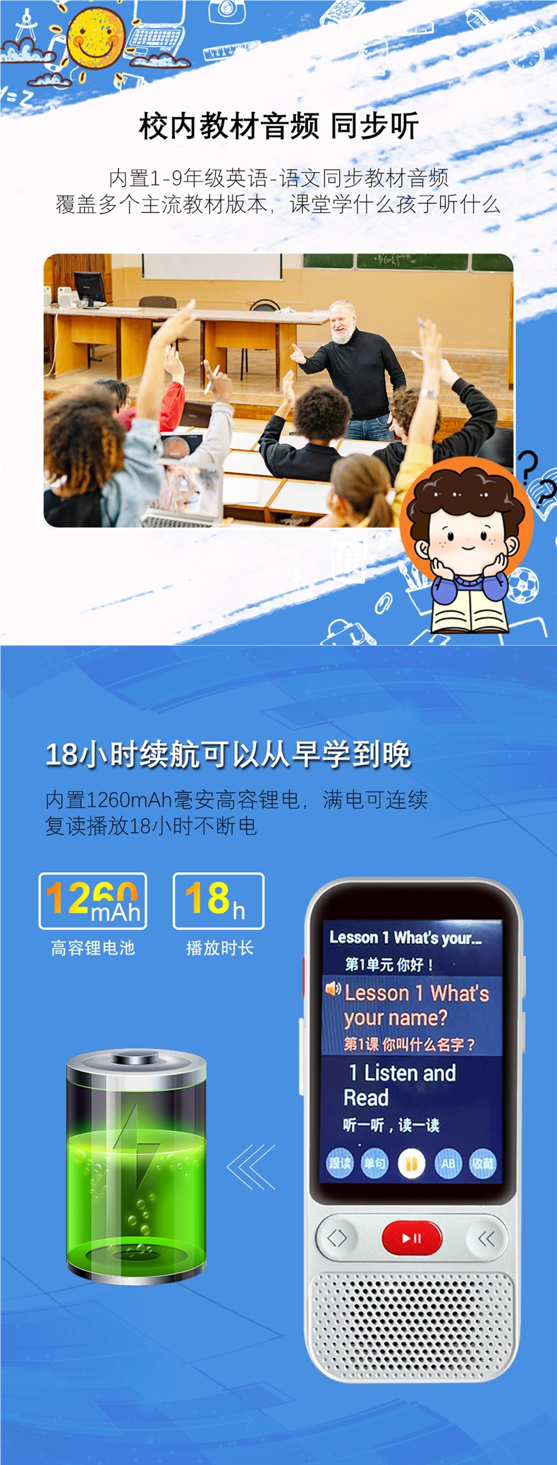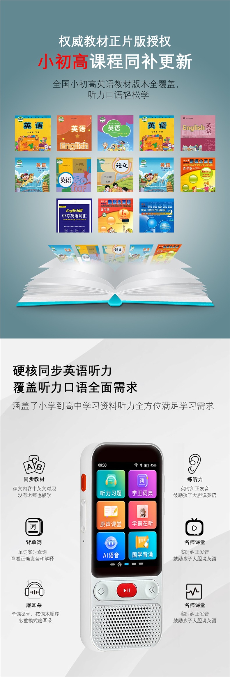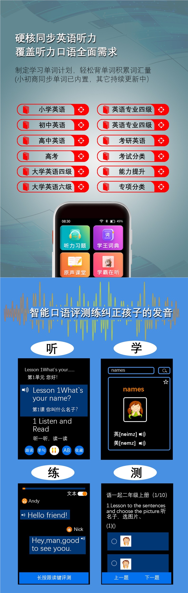Интеллектуальный повторитель английского, синхронизированный слушатель, портативный обучающий аппарат