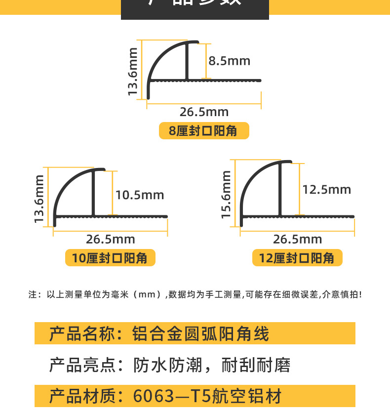 Алюминиевые сплавы, круглые угловые полоски, угловые линии стеновых панелей, полоски для защиты углов, металлические декоративные линии
