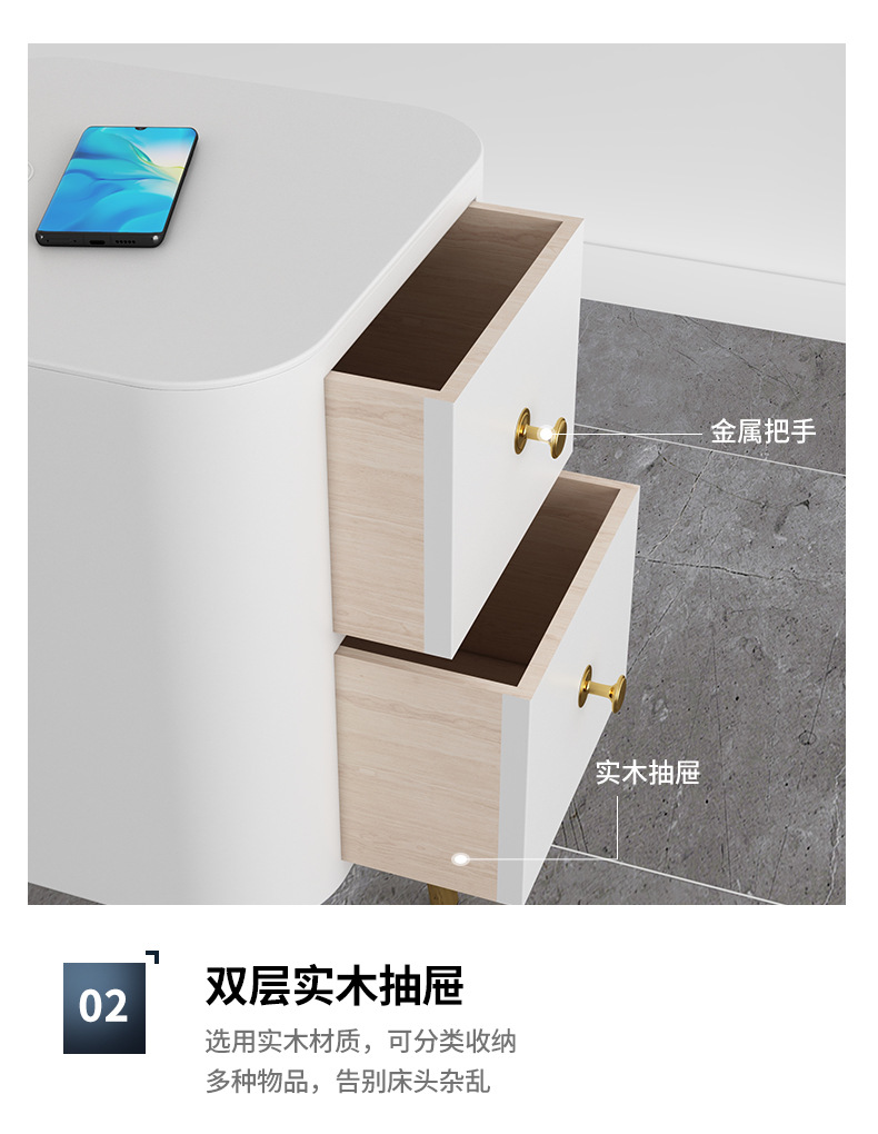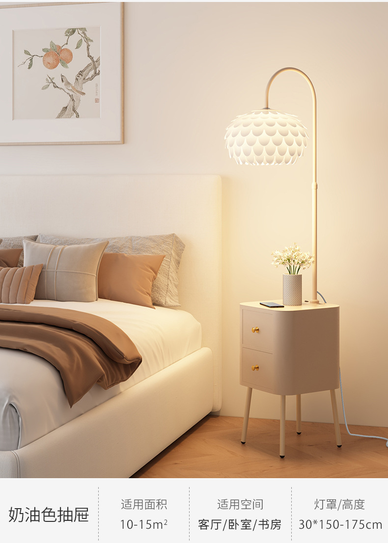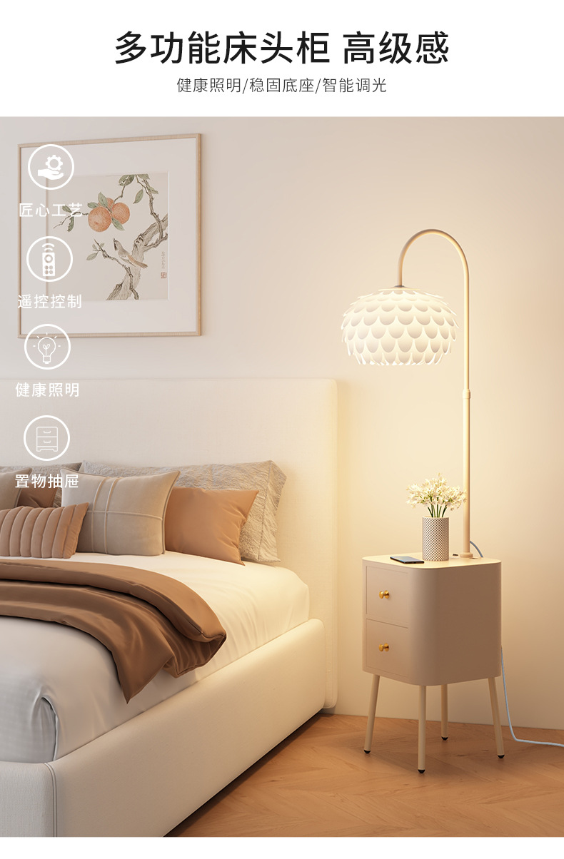 Кремовая прикроватная тумбочка с лампой, новый легкий люкс, умная плоская замена, маленький узкий столик для хранения, интегрированный светильник