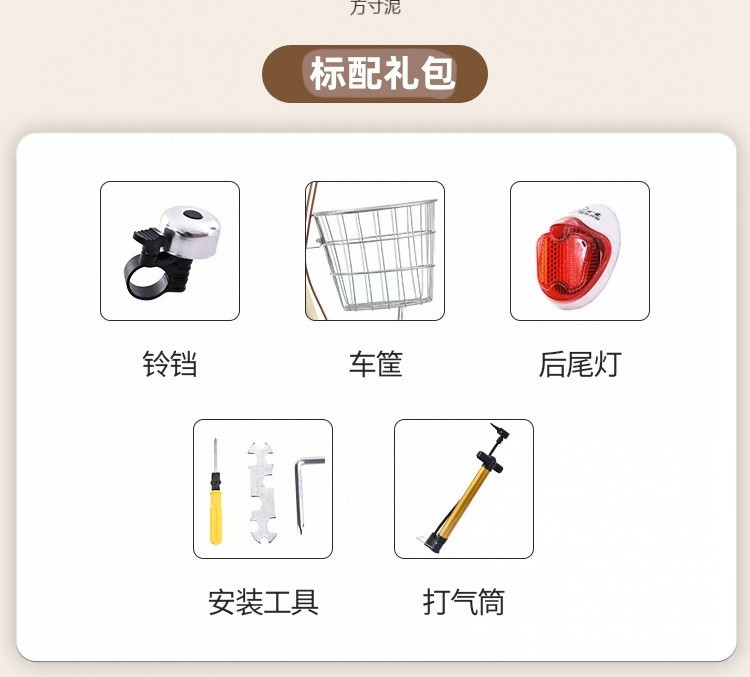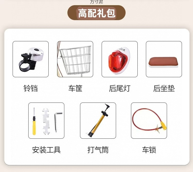 ![]() | Wheat yellow + [premium gift set] + large iron basket --- direct from shanda factory | 24inch no-inflation solid tires - direct from shanda factory | ¥332.1 / ≈ 4 040 ₽ | 100000 | 6124956991786 | |