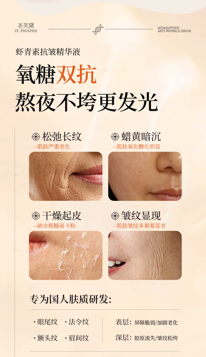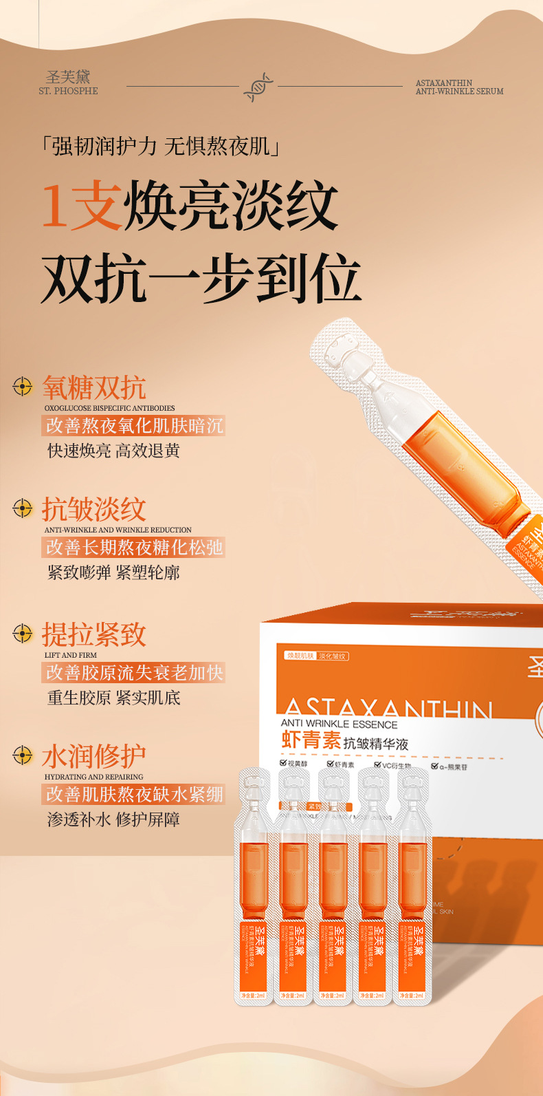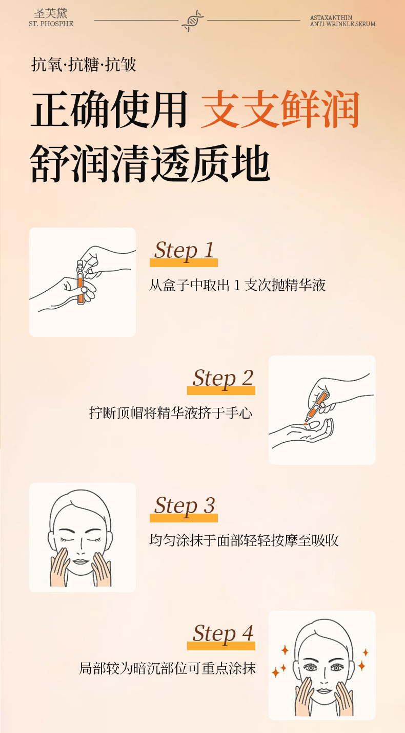 Эссенция с астаксантином Shengfuda, антивозрастная, для лифтинга, одноразовая