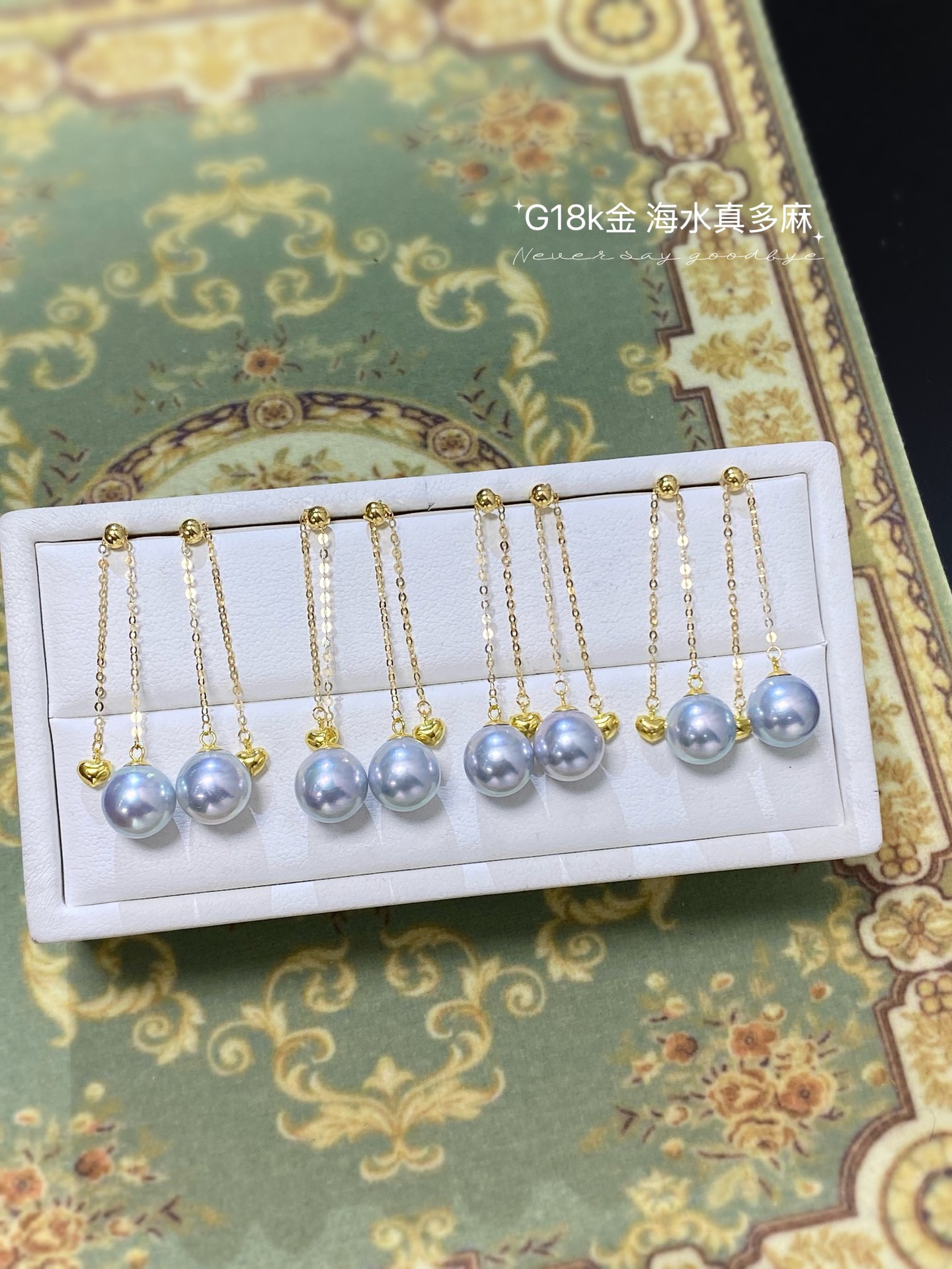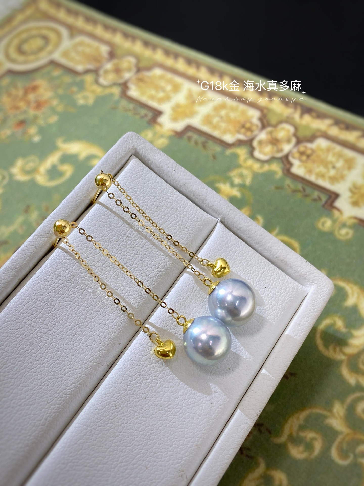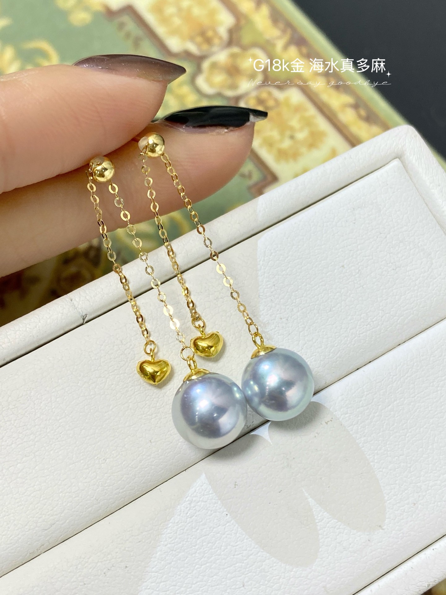 G18k厚金爱心海水珍珠耳饰💫💫 优雅百搭 经典日常 精致轻奢 8-9mm海水真多麻珍珠 皮光细腻透亮 圆润饱满 天然浓郁银蓝色