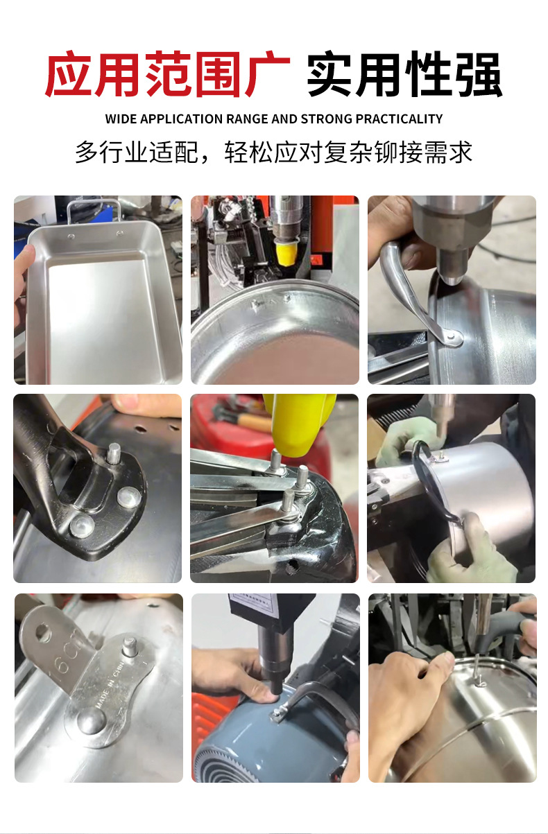 Цель Suitable for riveting pots, solid nail flat heads, mushroom heads, stainless steel galvanized nails, cabinet processing, hardware riveting with different pressures and styles, and the riveting effect is tight