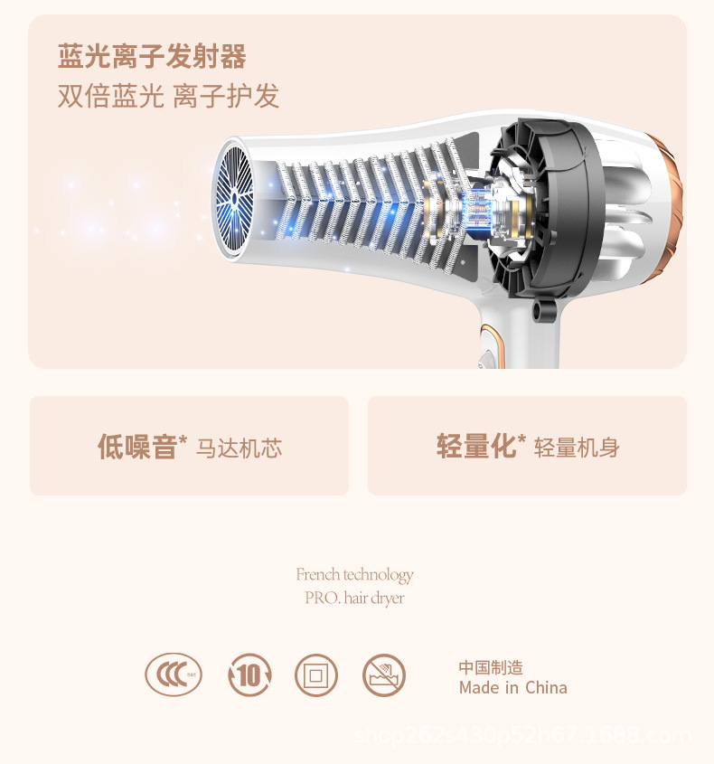 Фен с высоким потоком воздуха для дома, мощный, с негативными ионами
